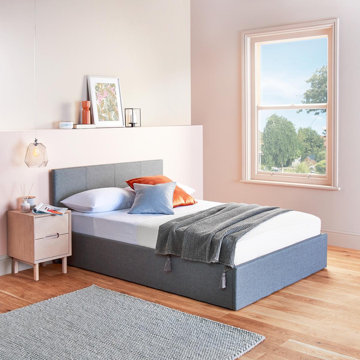 Upholstered in a smooth grey linen. This ottoman storage bed frame will effortlessly blend into any bedroom interior. Side Lift can be fitted left or right facing. Create extra space in your bedroom with a huge capacity under-bed storage compartment. The fabric base included is ideal to keep your items dust-free. The padded headboard, base & sides with strong sprung wooden slats for support and strength. Featuring an easy-access hydraulic dual lifting mechanism, this storage bed is made from the highest quality materials including the strong center support beam and upholstered frame. Pocket & Memory Foam Mattress: the highest comfort premium hybrid mattress is 16cm thick with up to 660 independent pocket springs mould to the body. High density foam and memory foam 2cm quilted top layer. Medium Firm- British Standard Certified. Breathable hypoallergenic cool touch cover. Anti-dust + Anti-mite.