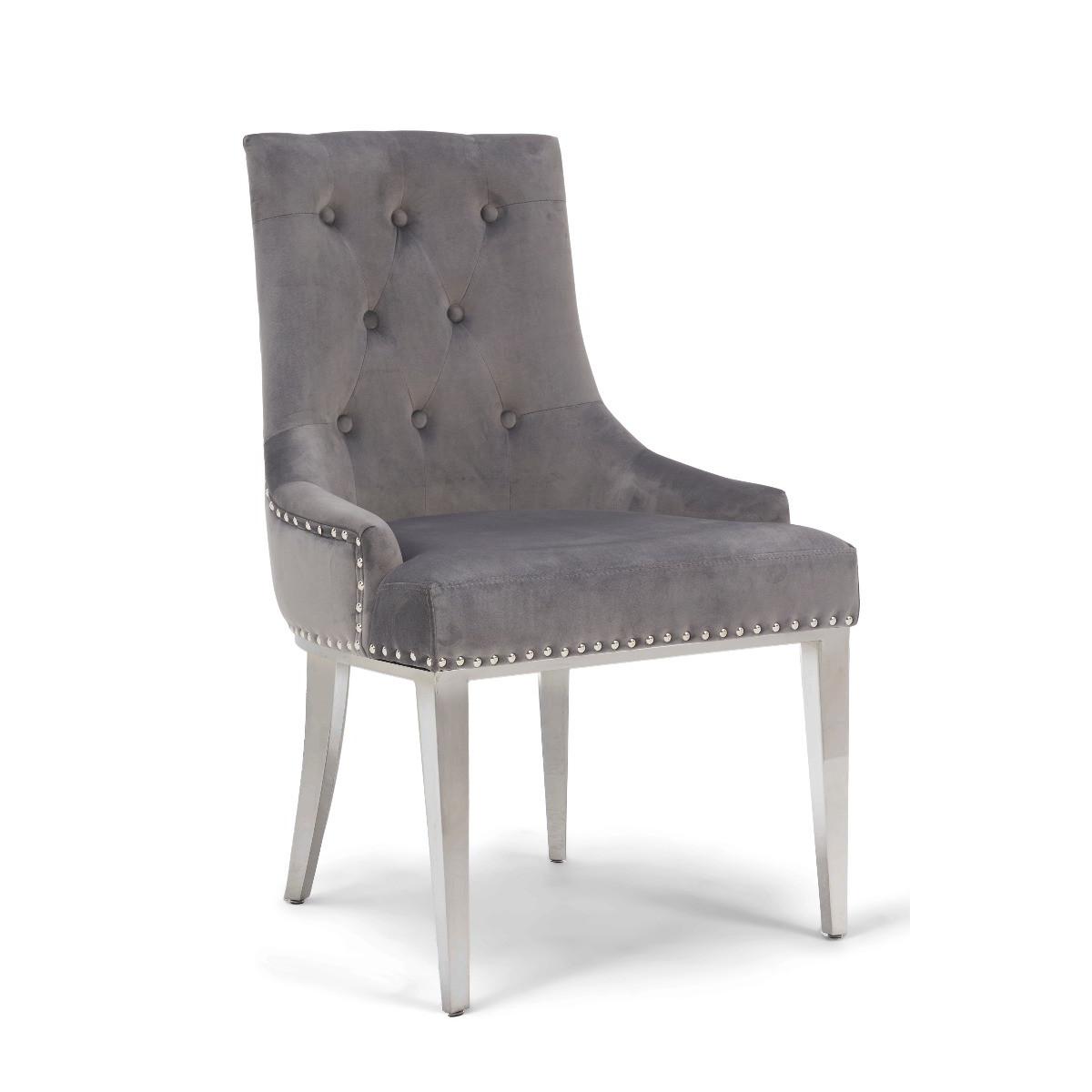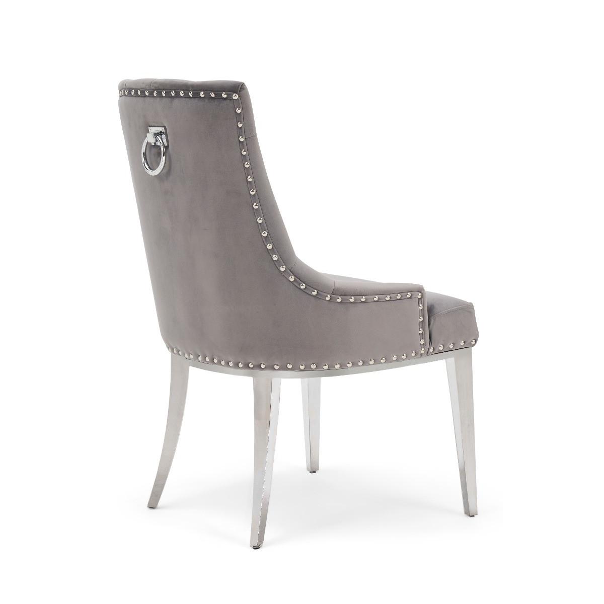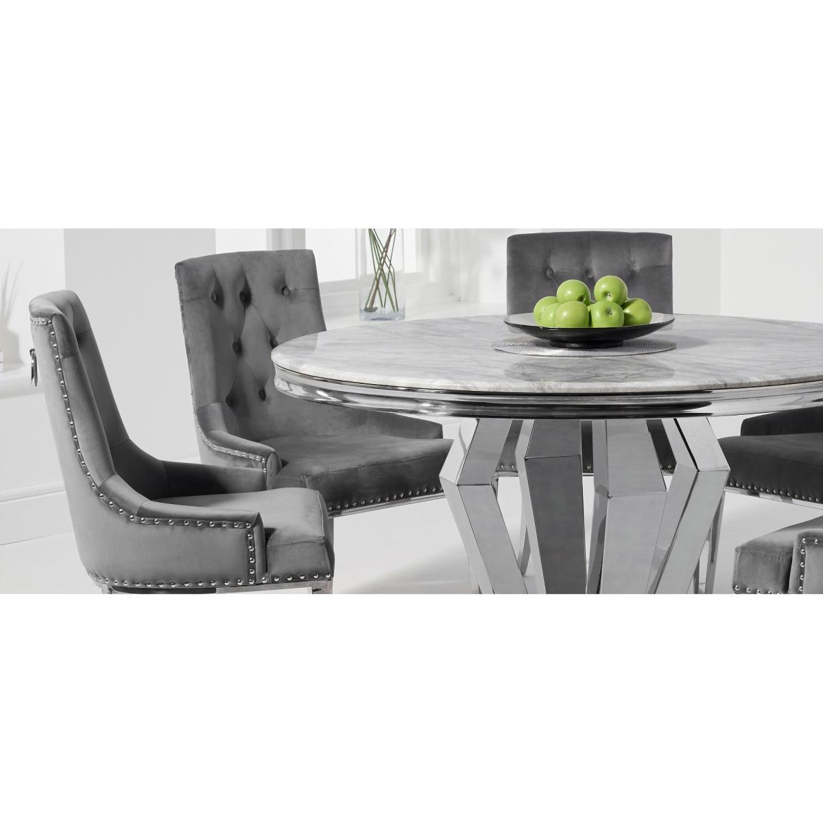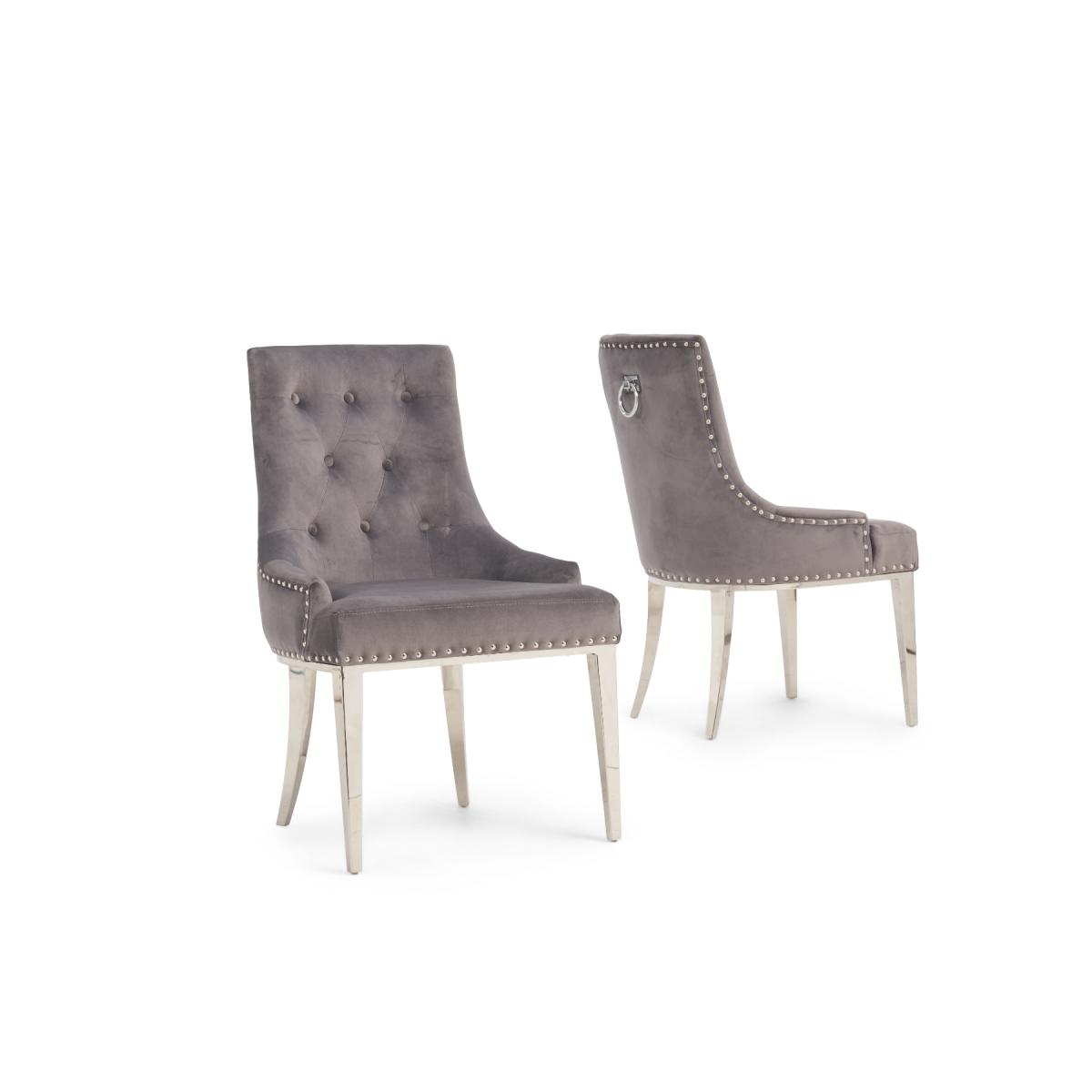 Sienna pairs perfectly with marble finishes and classic, modern design. The Grey velvet contrasts with lighter tones to add a classy styling to your dining room.