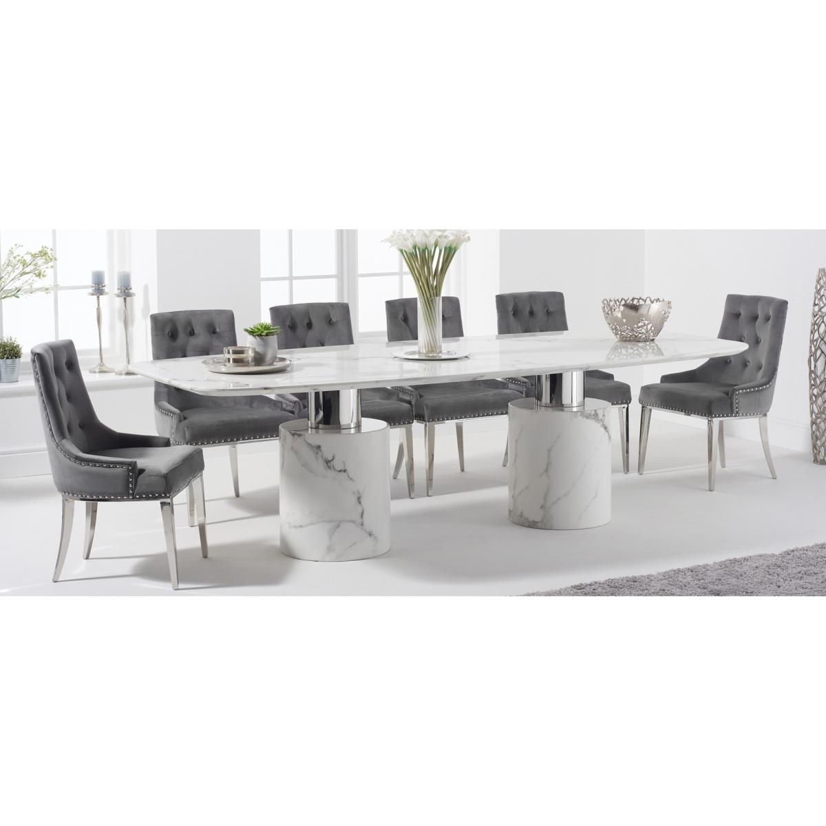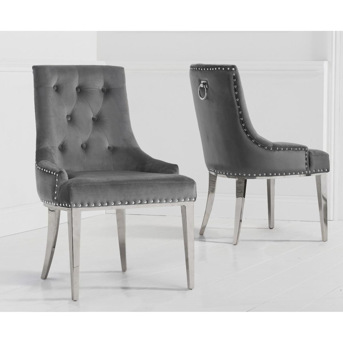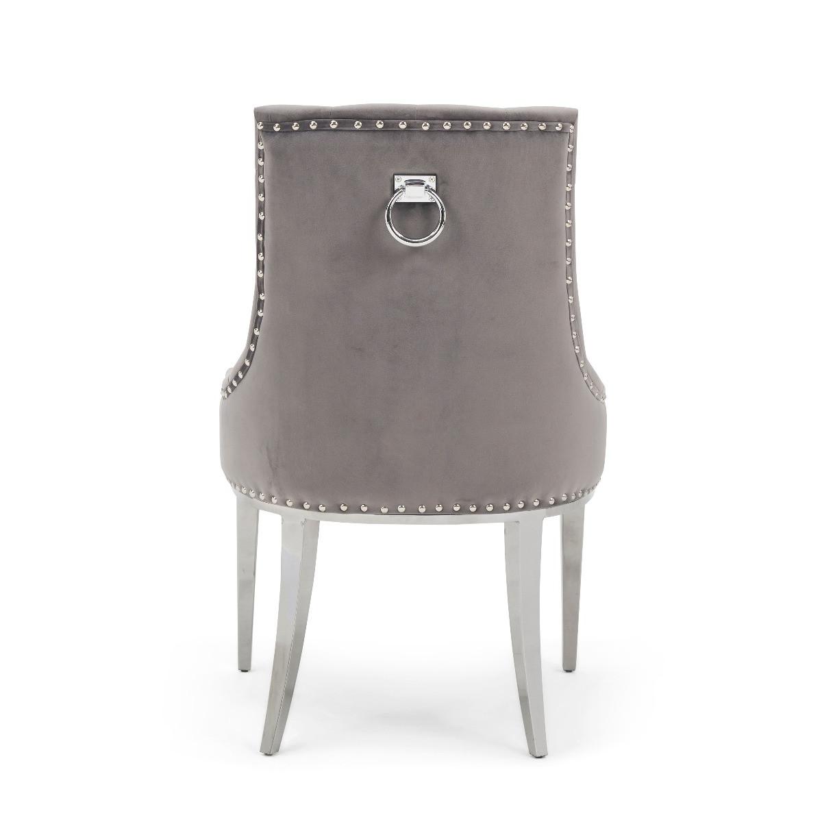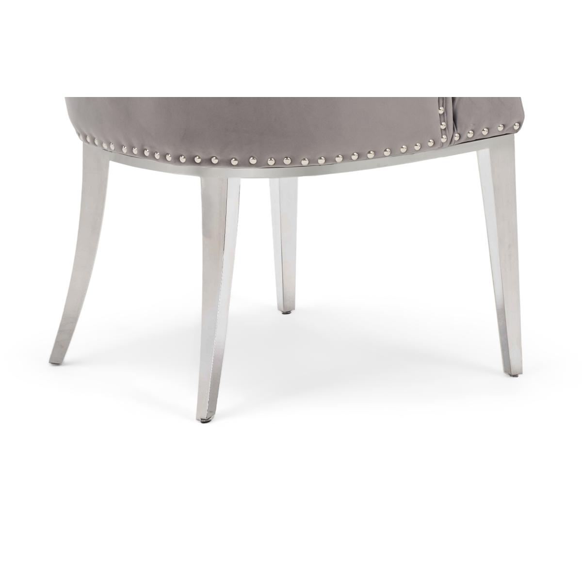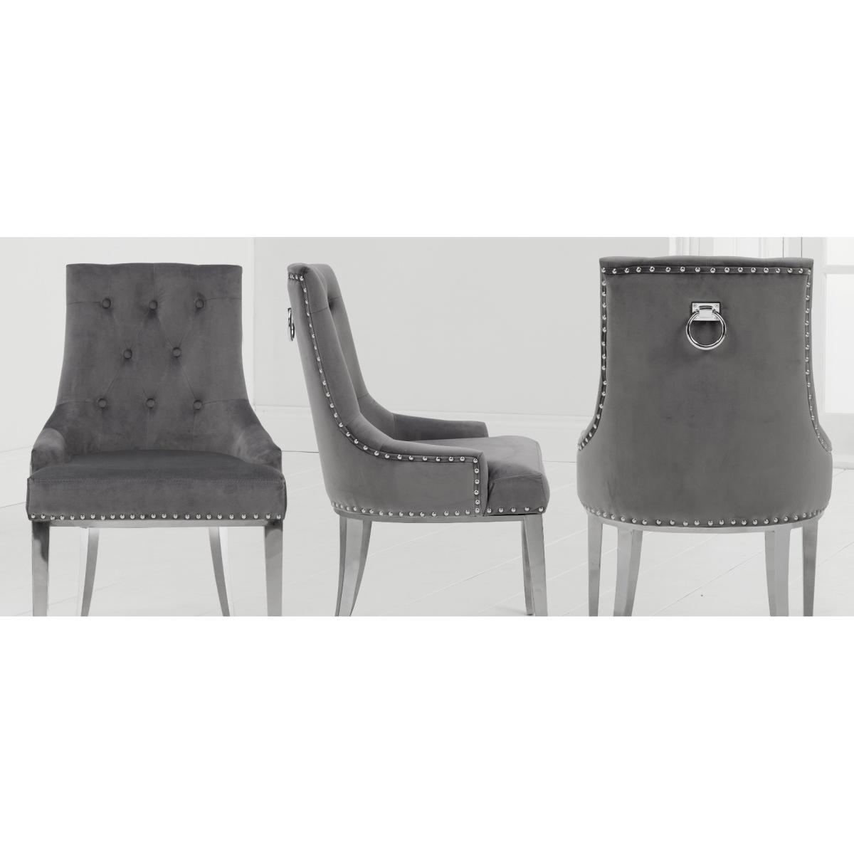 Sienna pairs perfectly with marble finishes and classic, modern design. The Grey velvet contrasts with lighter tones to add a classy styling to your dining room.