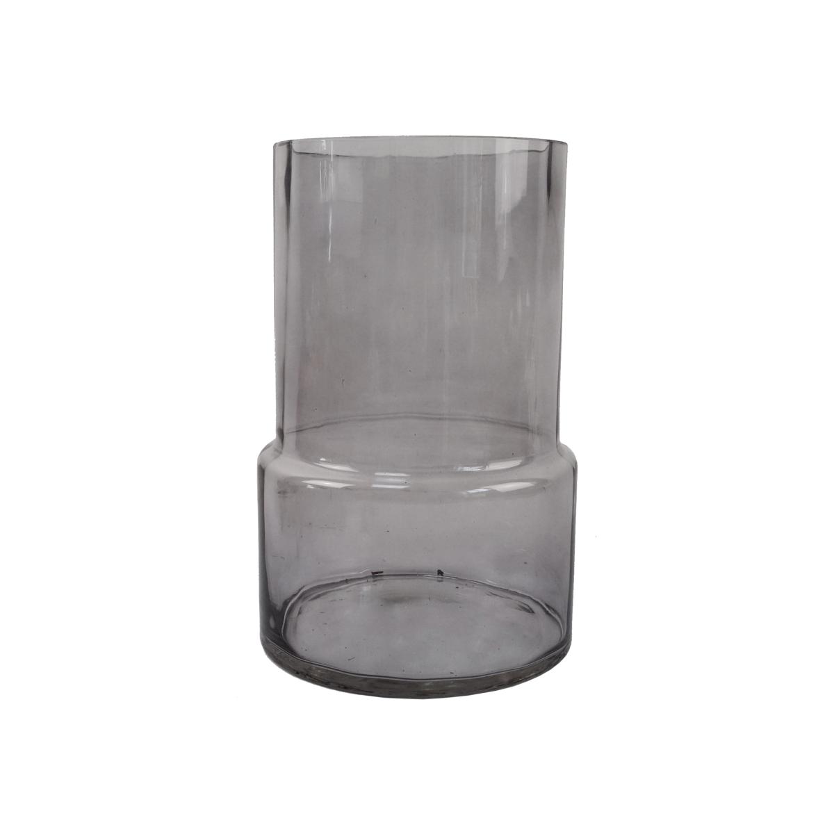 Glass vase which is clear with a slight grey smoke tint. The slightly narrower top rim measures 15cm diameter. Thick and high-quality glass vase. This is suitable for both real and artificial flowers. These glass vases are hand finished and there may be small differences between them. We have also included some pictures along with some of our artificial flowers to give an idea of size and usage but no flowers are included with this vase.