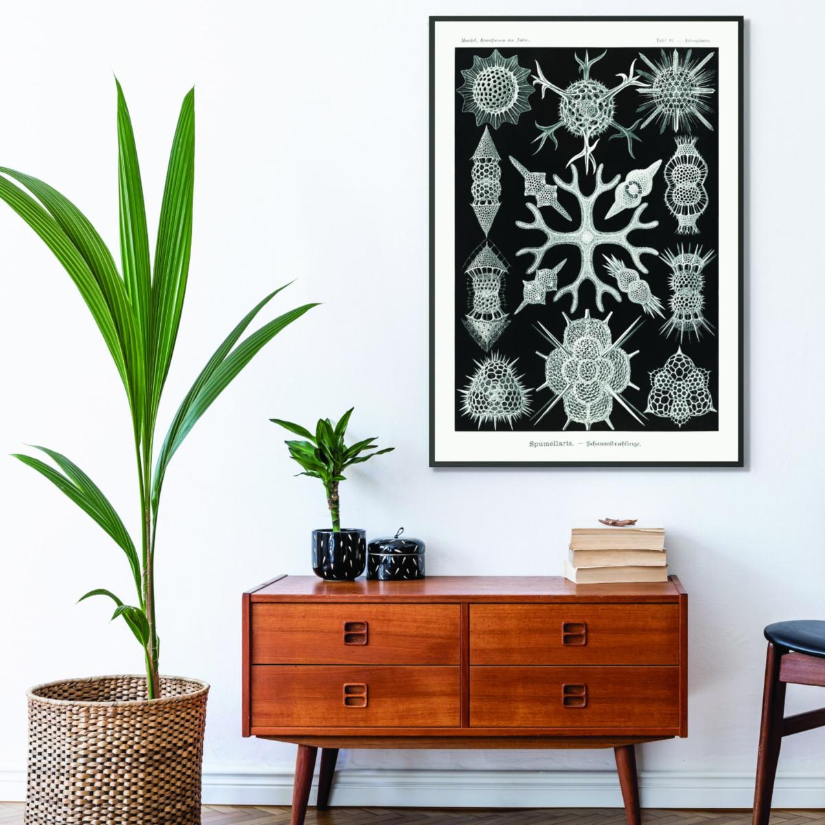 I really like this print for its scientific elegance and intricate detail. It works particularly well in modern or minimalist interiors, providing a striking focal point without overwhelming the space. The monochrome palette makes it versatile, so it can easily complement colour schemes ranging from neutral to more vibrant settings. Practical styling tips include framing it with a simple border to enhance its scientific aesthetic or pairing it with other nature-inspired pieces for a cohesive look. It’s especially effective in a study, living room, or even a bathroom where its detailed design can be appreciated up close. Overall, this print offers a sophisticated, slightly scientific vibe that can elevate a variety of interior styles.