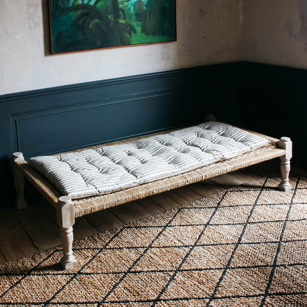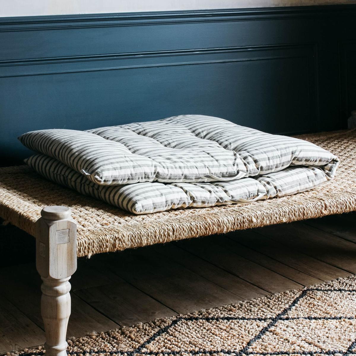 I love the grey striped bed roll for its versatile, understated style that suits a range of interiors, from cosy countryside retreats to modern urban spaces. It works particularly well layered over a neutral bedspread or thrown across a classic daybed to add texture and subtle pattern. Its muted tones make it easy to incorporate into monochrome schemes or softer colour palettes, while the stripes add visual interest without dominating the decor. For practical styling, try folding it neatly at the foot of the bed or draping it casually for a relaxed, lived-in look. It’s also great for adding some warmth and comfort without the bulk of traditional blankets, making it a handy and stylish choice for everyday use.
