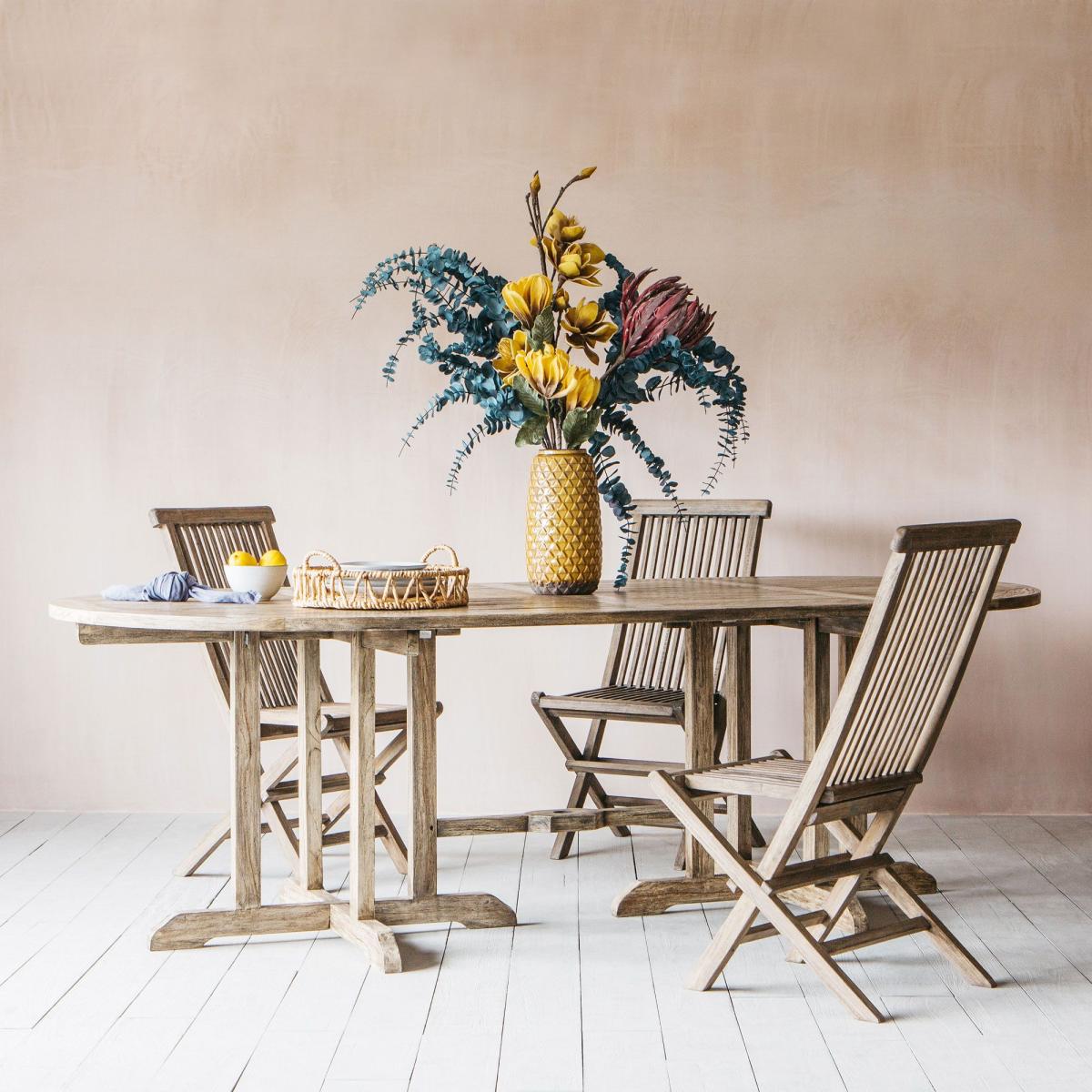 I love the grey teak garden table for its robust and natural look, which makes it ideal for both casual and more refined outdoor settings. Its large size offers plenty of space for gatherings and outdoor dining, while the weathered finish lends a relaxed, timeless appeal. It works well in contemporary, rustic, or coastal gardens, especially when styled with a mix of wicker or wooden chairs, and neutral or pastel cushions to soften the look. Practical tips include pairing it with a lightweight tablecloth or runner for colour or pattern, and adding potted plants and lanterns to create a welcoming, cohesive outdoor space. This table’s versatile aesthetic means it can adapt easily as your outdoor style evolves.