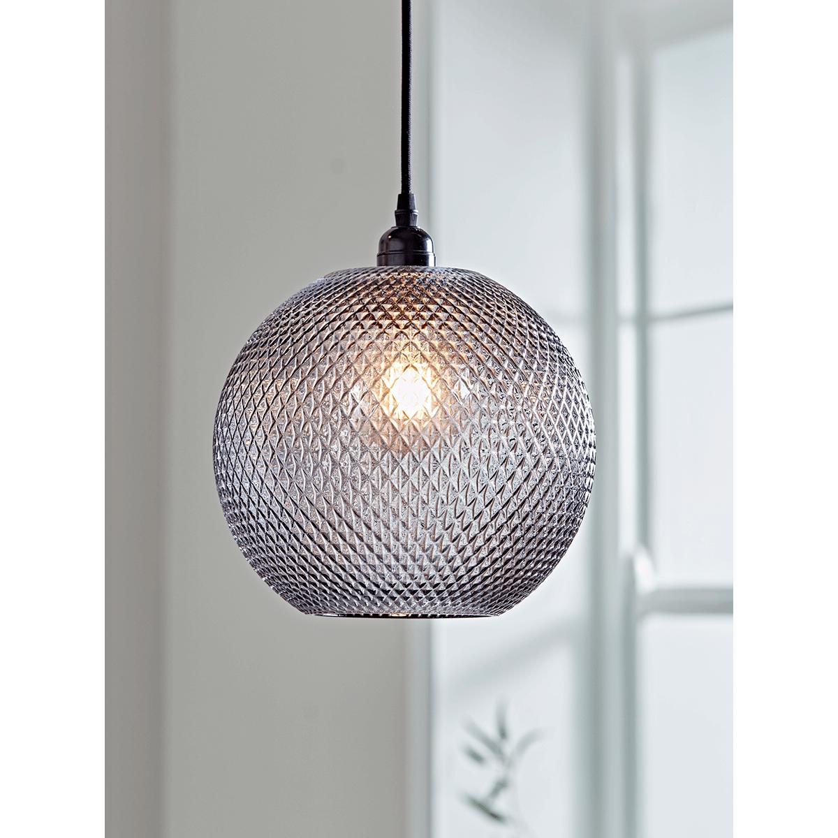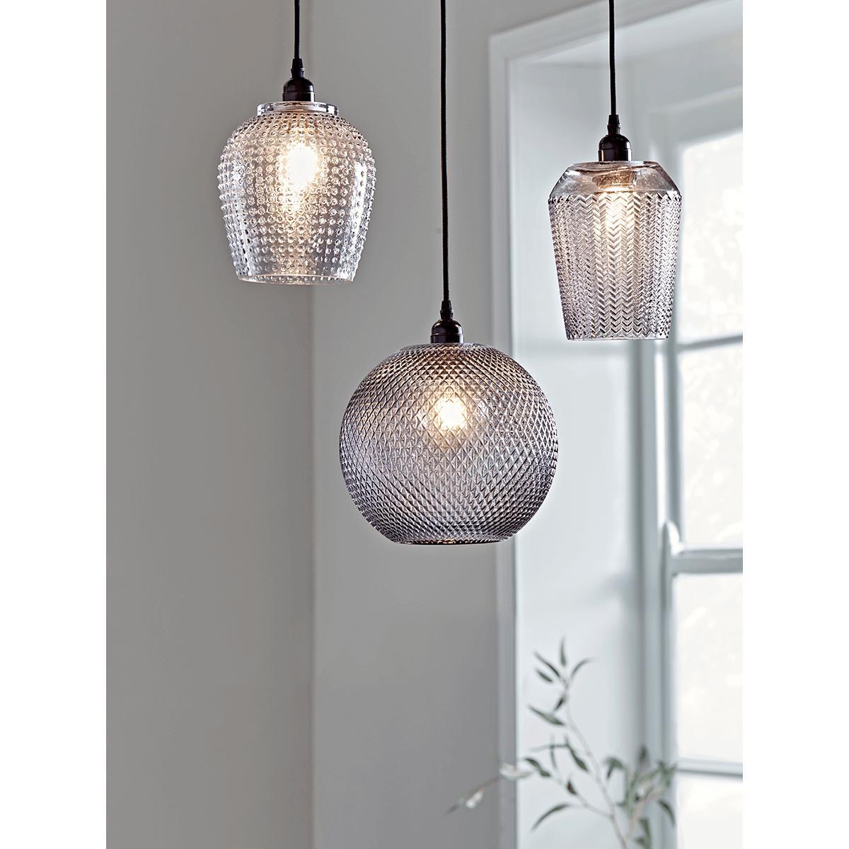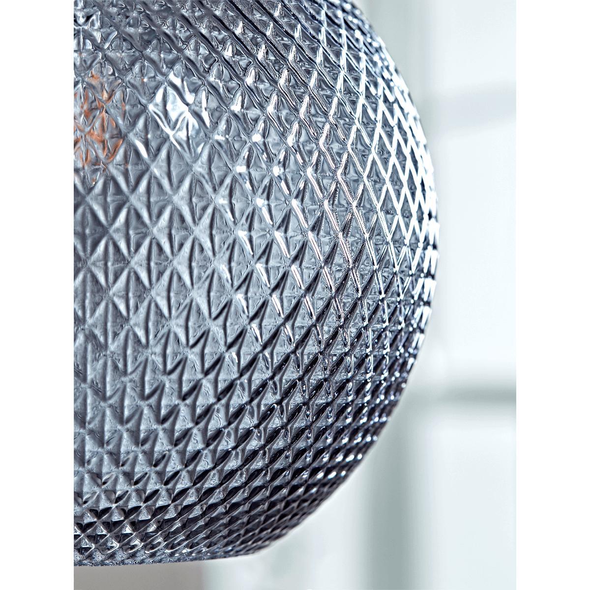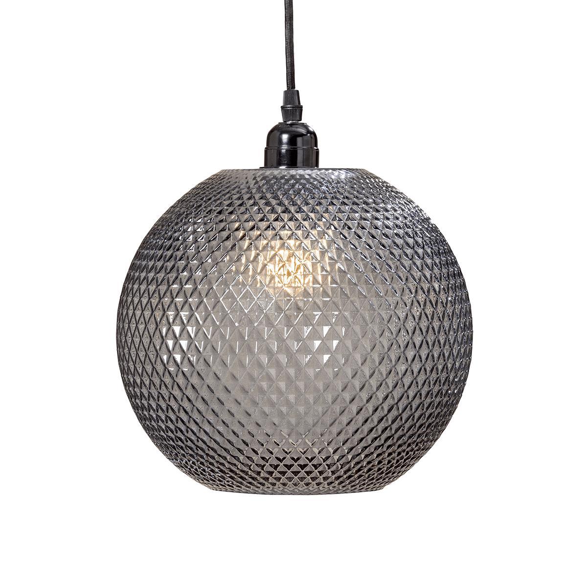 Made from high quality glass with a diamond embossed finish, our dark grey pendant will cast an elegant ripple around your room when lit. Each pendant has a smoky grey finish, black top and matching ceiling rose, ready to add a touch of style to any space.