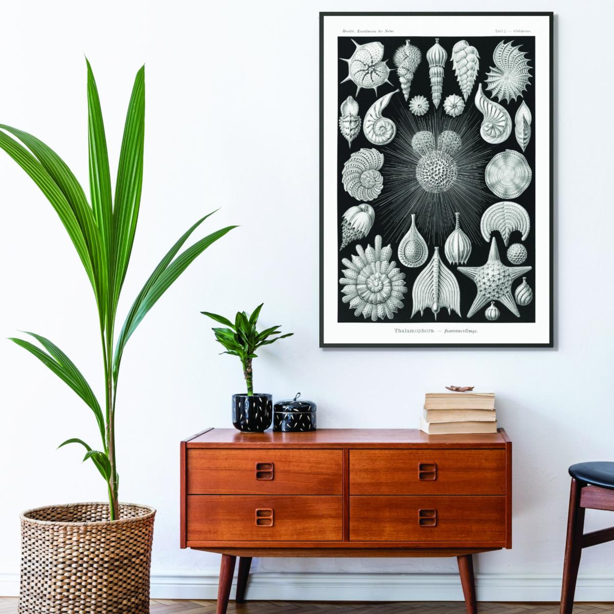 I really like this print - it’s a striking piece that combines scientific intrigue with a vintage aesthetic. The monochrome palette makes it versatile, working particularly well in minimalist or modern interiors where it can serve as a focal point without overpowering the space. It’s also a good choice for a study, office, or living room where a touch of curiosity and sophistication is desired. For styling, consider framing it in a simple, sleek frame to emphasise its scientific detail, or pair it with other nature-inspired artwork for a curated gallery look. The size is substantial enough to make an impact on a feature wall, but keep surrounding décor understated to let the print stand out.