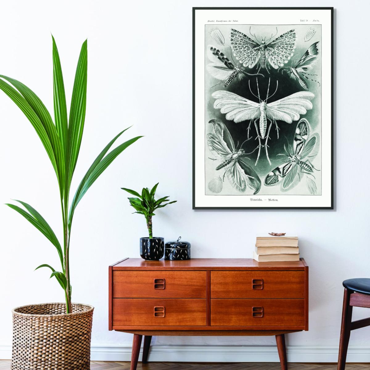 I love this print for its vintage scientific charm, making it a versatile piece that pairs well with both traditional and modern interiors. The detailed insect illustrations by Haeckel bring a touch of nature’s complexity indoors, perfect for creating a focal point in a living room or study. To style it effectively, consider framing in a simple, minimal frame to let the artwork stand out, and hang at eye level in a well-lit area. It works particularly well in spaces with neutral tones, where it can add a subtle contrast, or in eclectic interiors where it complements other curiosities. Practical tip: it looks striking grouped with other natural history prints or placed alongside minimal plant arrangements for a curated, botanical vibe.