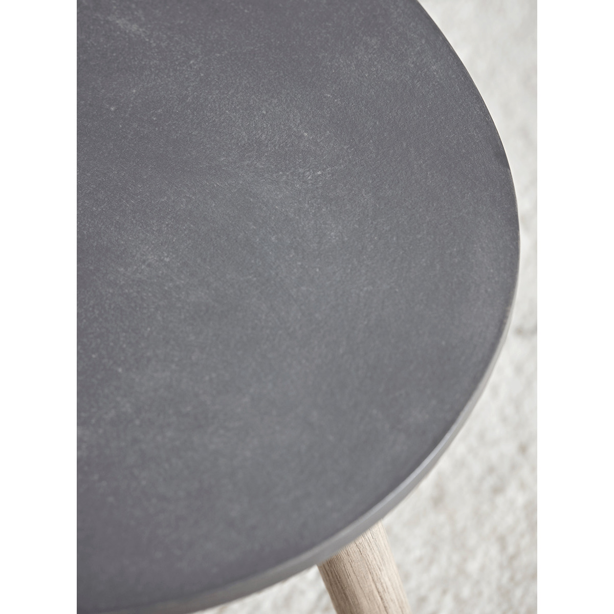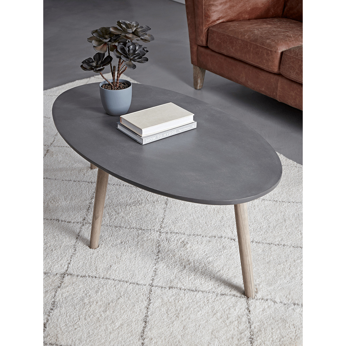 Perfect for adding an industrial touch to your lounge or living area, our stylish coffee table features an oval shaped faux concrete resin top in deep grey, with four slender ash legs. Pair with our Three Grey Topped Tables for a complementary set.