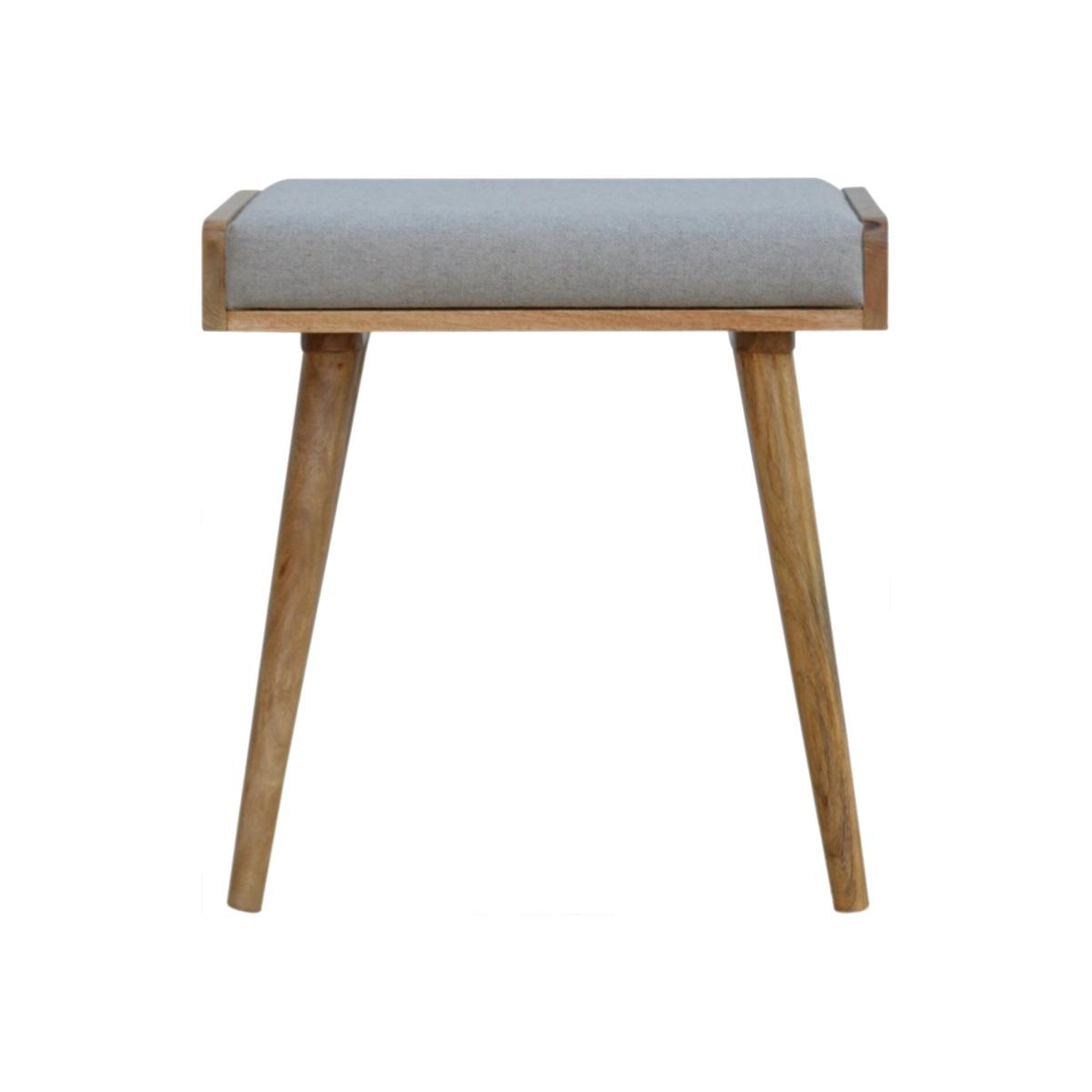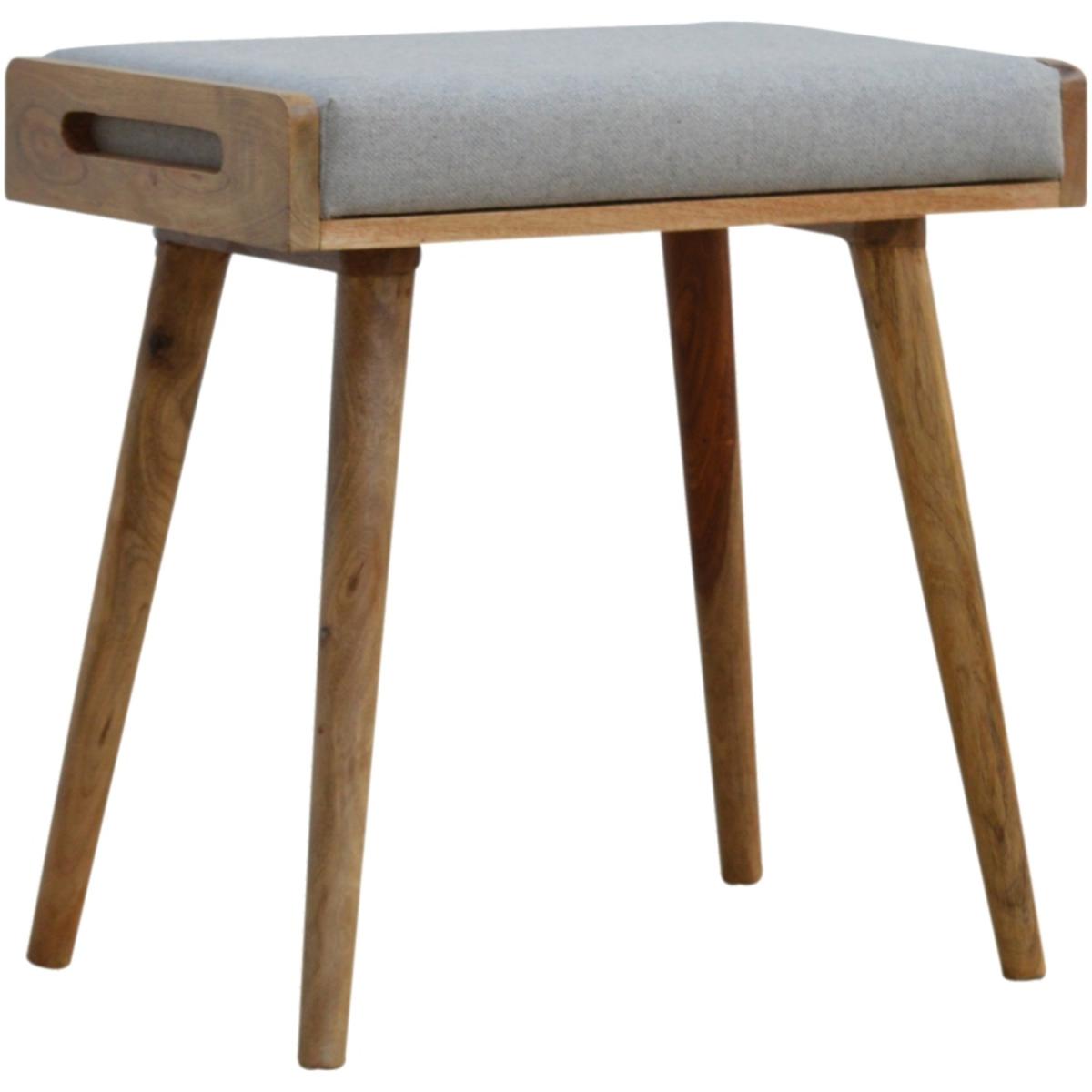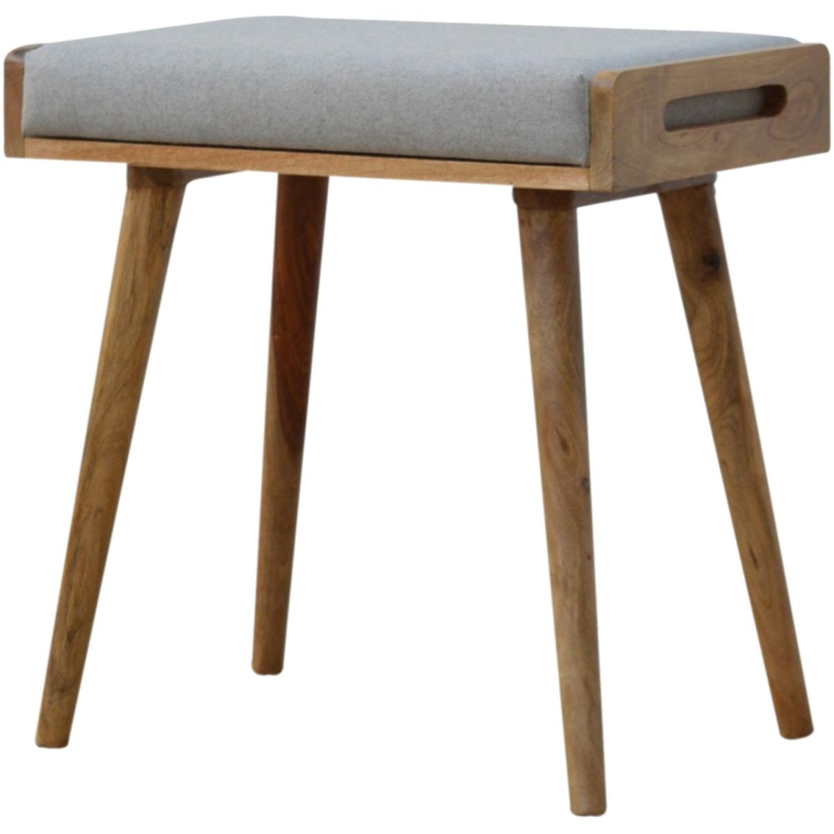 This footstool features a tray-style design and 4 Nordic style legs. It has an upholstered grey tweed top which works as a comfortable seat and can be incorporated into many different interior styles as it offers a very simple, clean, and modern design, along with providing a nice contrast between the 2 different materials and colours.