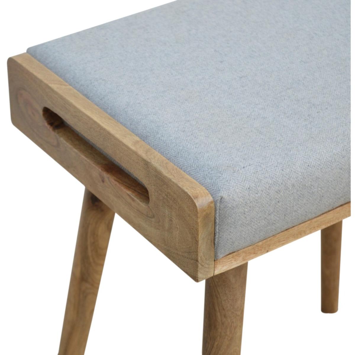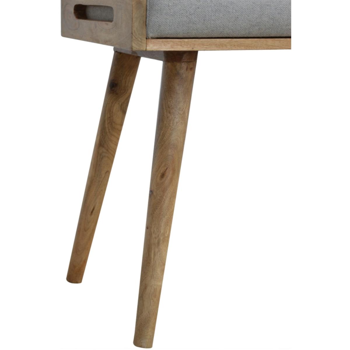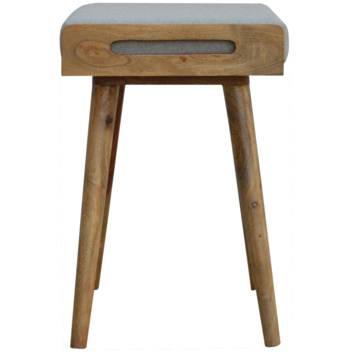 This footstool features a tray-style design and 4 Nordic style legs. It has an upholstered grey tweed top which works as a comfortable seat and can be incorporated into many different interior styles as it offers a very simple, clean, and modern design, along with providing a nice contrast between the 2 different materials and colours.