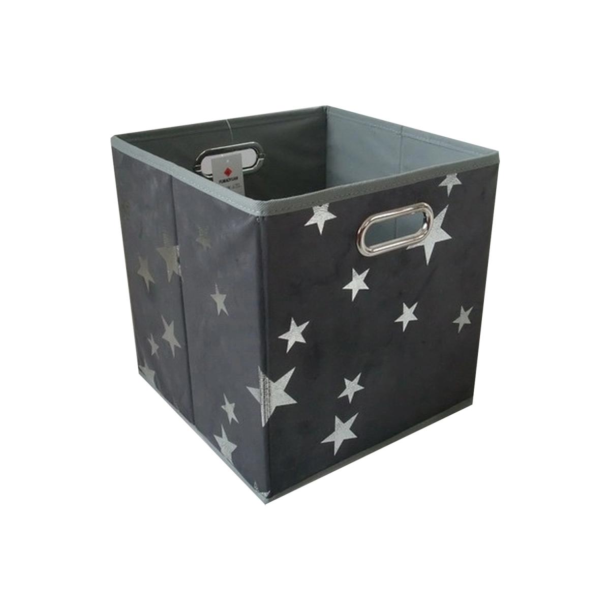 This Grey Velvet & Silver Star Storage Cube is a contemporary storage box that will bring some glimmering style to your home as well as practicality. Ideal for storing away books, toys, winter warmers, and more, this storage cube is coloued a dark grey and features metallic stars all over.