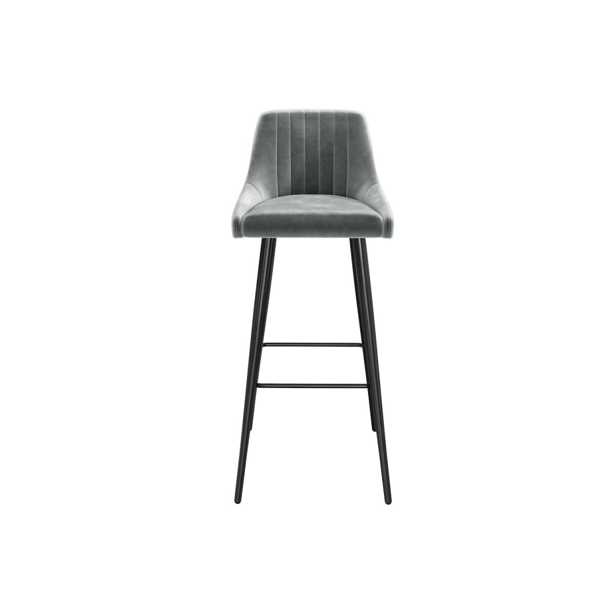 Grey Velvet Bar Stool with Back - 77cm - Macie