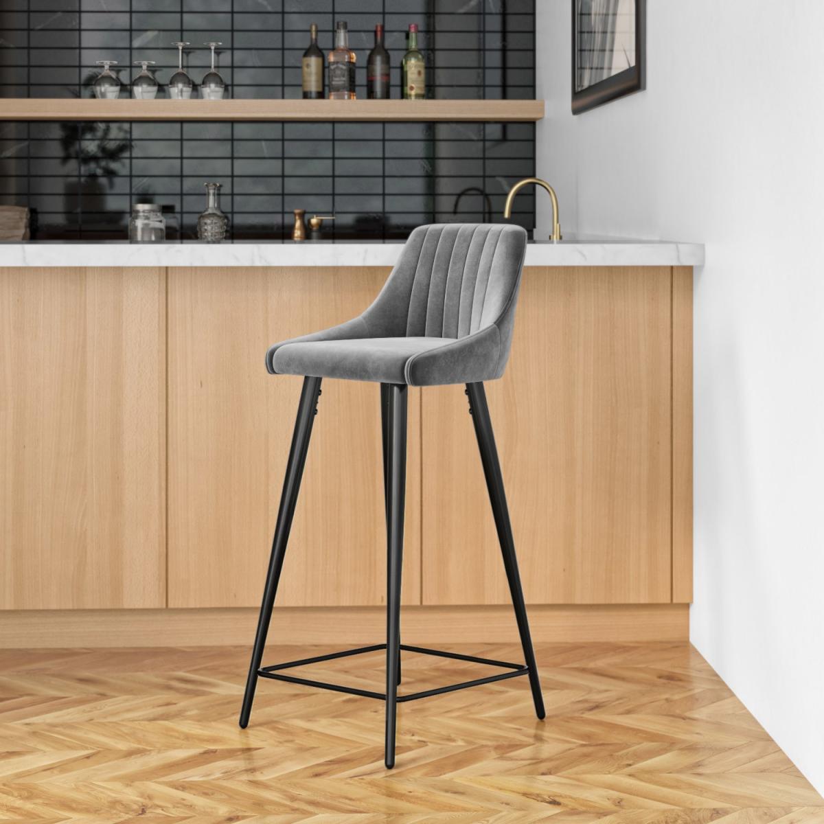 I love the grey velvet bar stool with back for its sleek, contemporary look that adds a touch of softness to modern interiors. Its adaptable colour makes it versatile for various colour palettes, from neutral Scandinavian schemes to more vivid, eclectic styles. The velvet upholstery offers a plush feel, making it comfortable for everyday use, while the high back provides good support. It’s perfect for kitchens with islands or breakfast bars, as well as trendy home pubs. Styling tips include pairing it with metallic accents or matte black fixtures to enhance its sophisticated vibe, and layering with textured cushions to soften the look in more relaxed settings. Its 77cm height makes it a great match for standard-height counters, providing both form and function seamlessly.