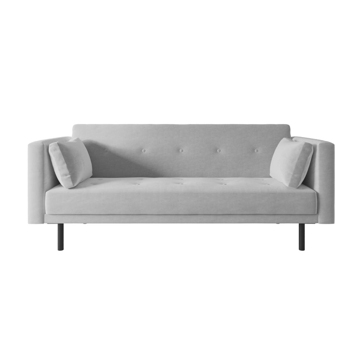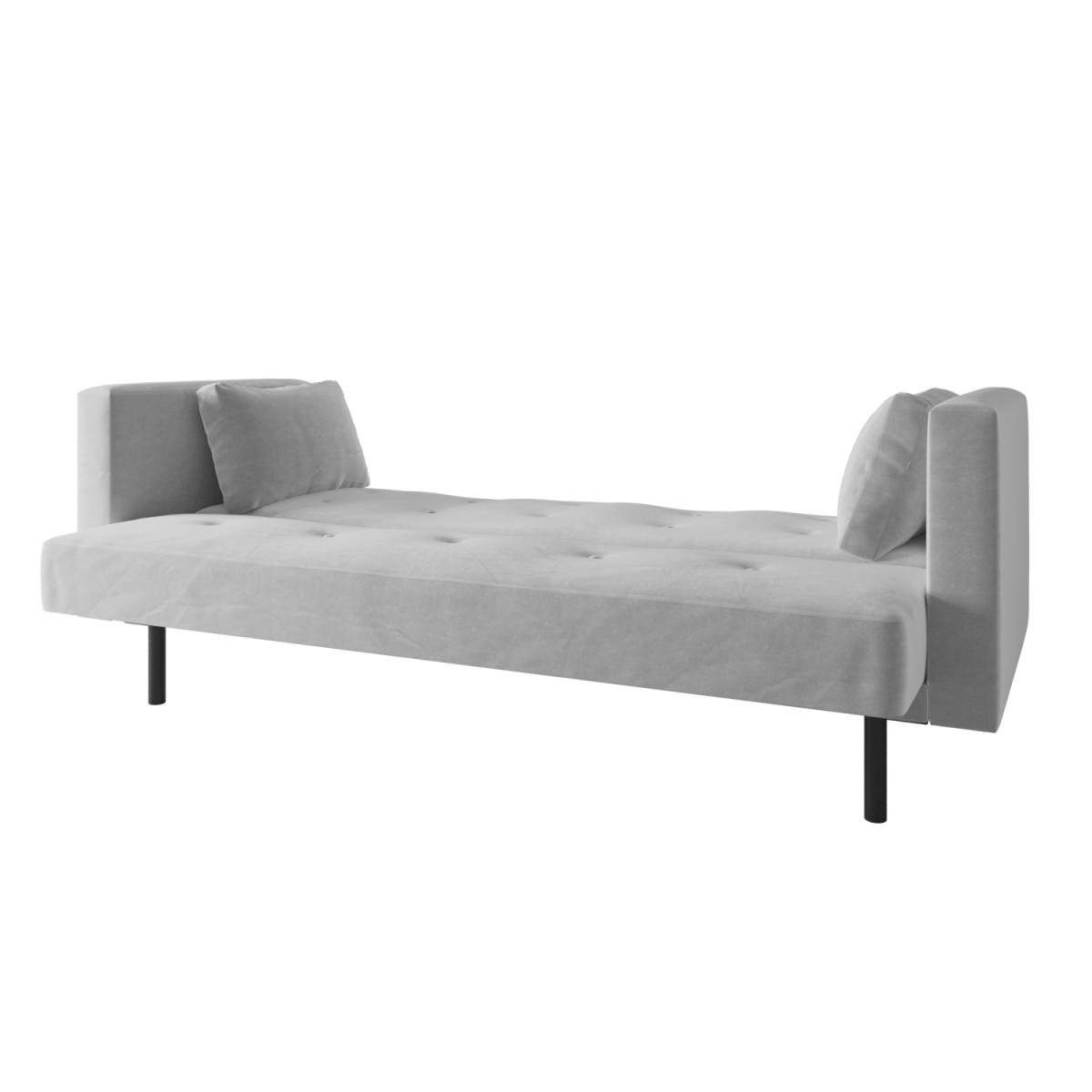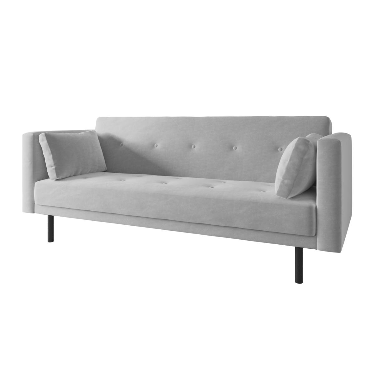 This click-clack sofa bed is perfect for those last-minute guests. It is beautifully upholstered in a soft touch grey velvet, it's guaranteed to make an impact, and it'll easily coordinate with other furnishings and décor. The dark metal legs add a final finishing touch. This sofa can seat up to 3 people and it also turns into a bed, the Rory is practical and convenient. Also, the 2 scatter cushions are included providing extra comfort.