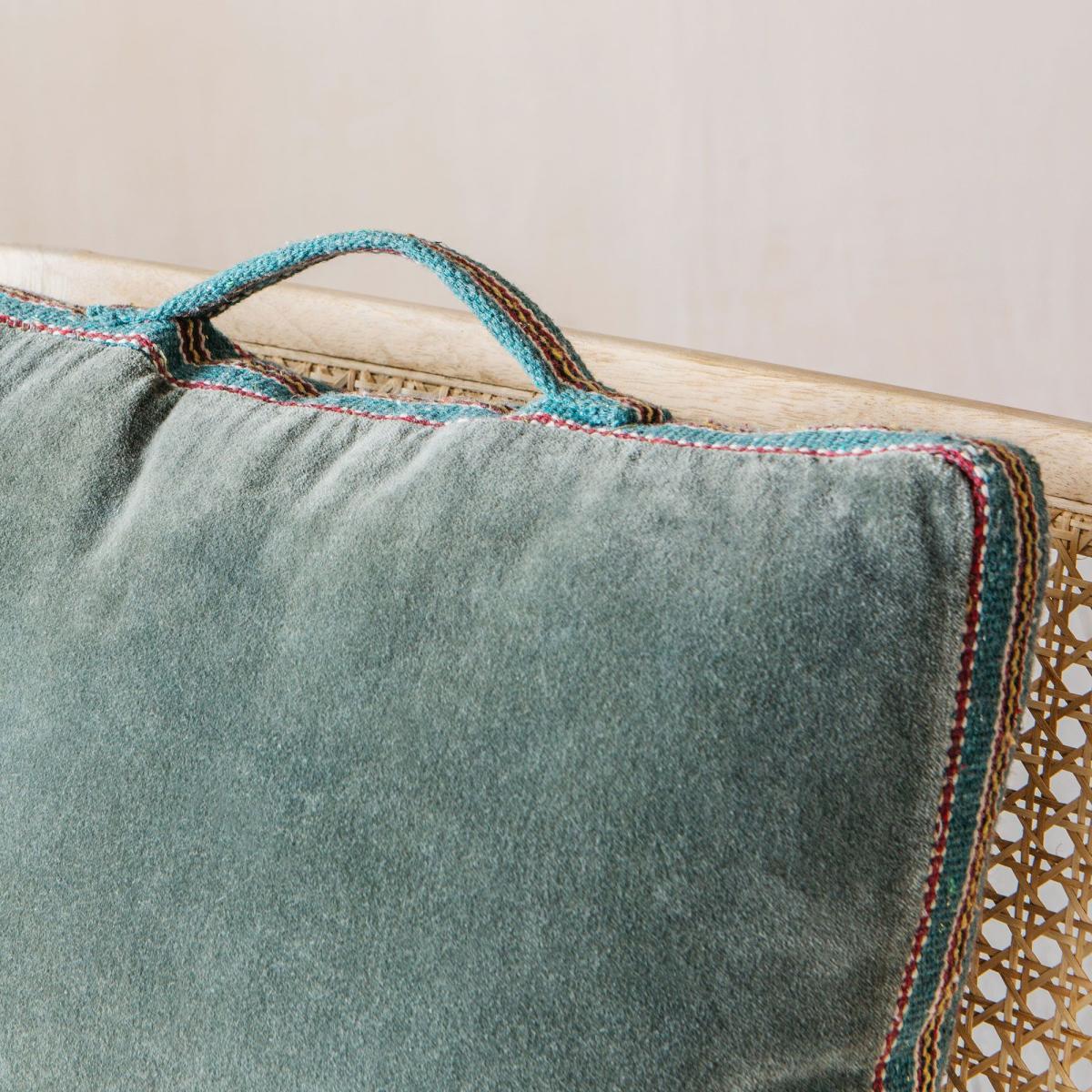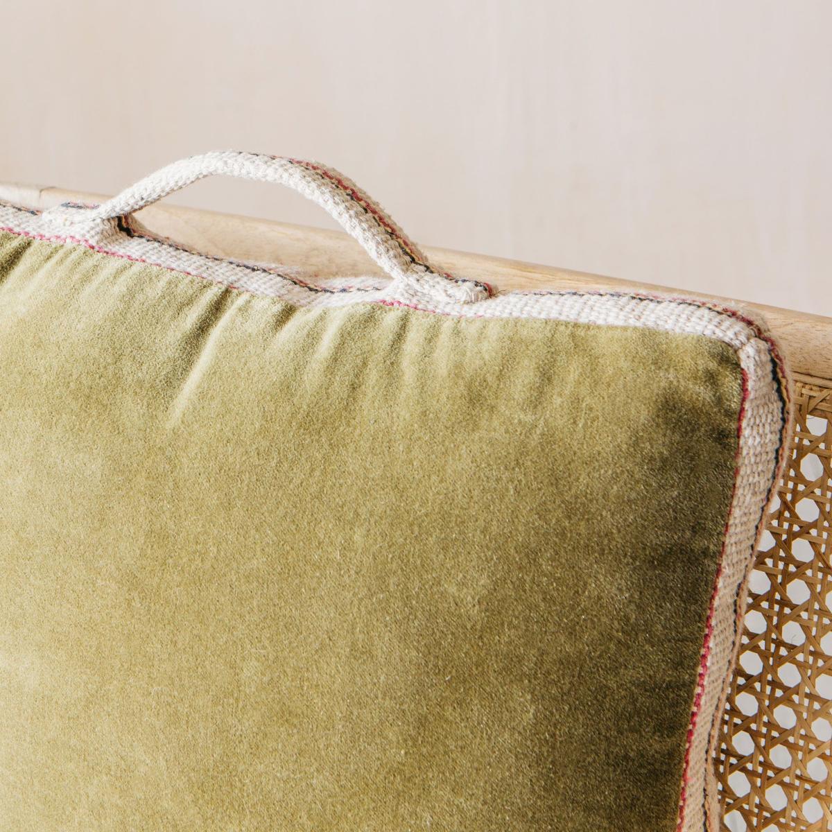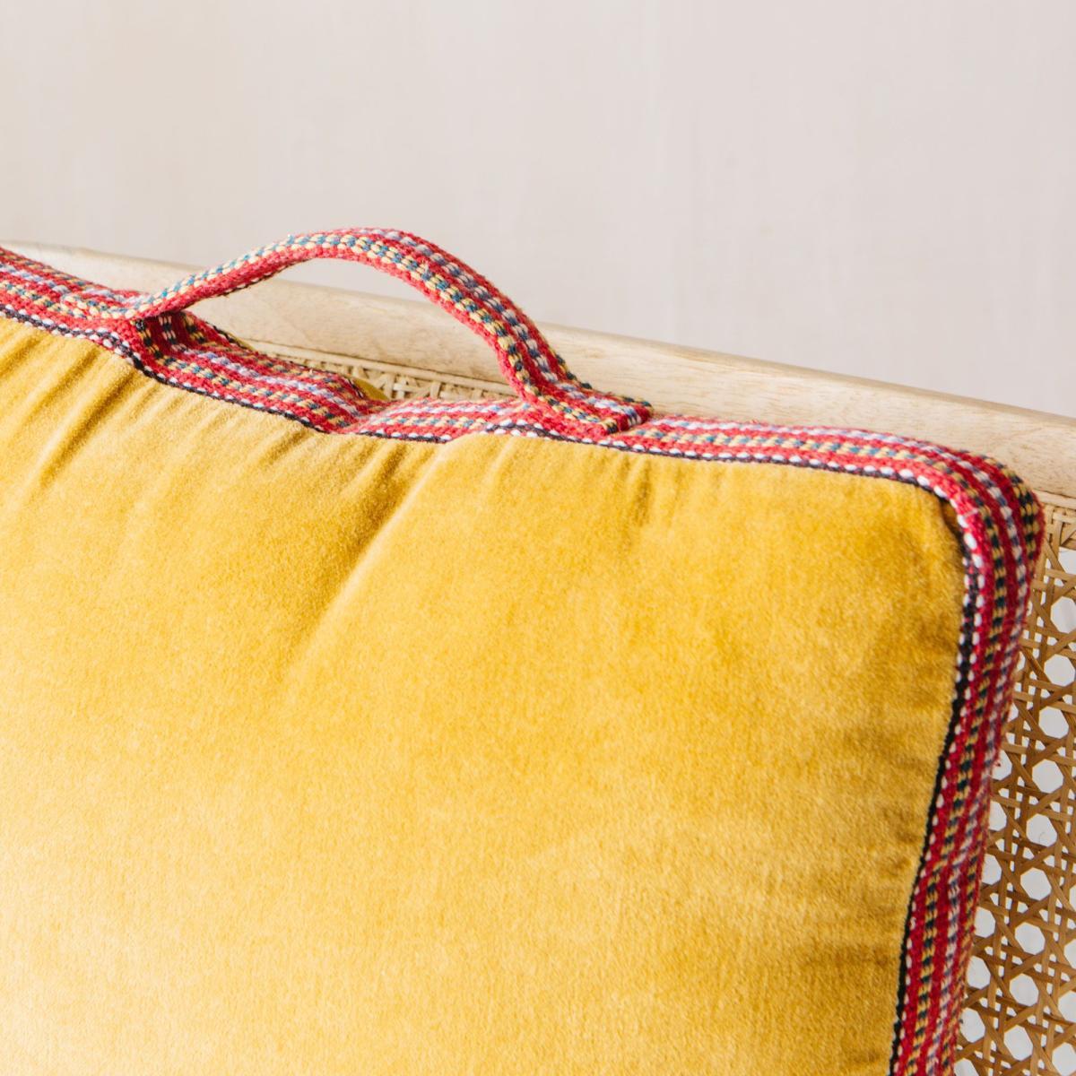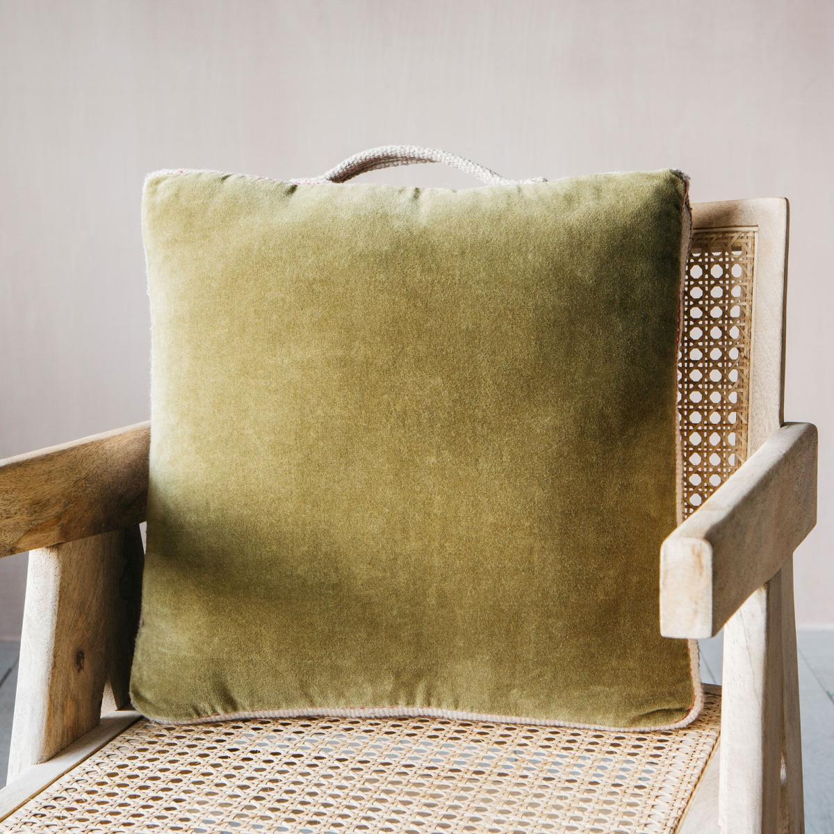 A collection of vibrant cushions handmade from sumptuous velvet with a contrasting trim and stitched handle. Perfect as plush seat pads or stylish floor cushions.