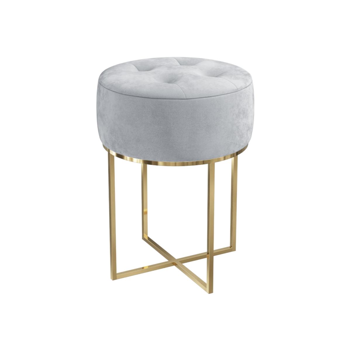Features we love Contemporary and petite; it'll add a sophisticated touch anywhere in the home. Beautifully upholstered in plush velvet fabric with quilted button detailing for a luxurious finish. Modern gold criss-cross base and silver-grey velvet is a wonderful contrast. Versatile - use as an extra seat place at the dressing table or use as sofa footrest. There's no assembly required so you can use it right away All about me. Meet the Fiorella bedroom stool. Beautifully upholstered in a soft-to-touch plush silver-grey velvet with button detailing this contemporary stool is right on-trend. It'll make an utterly sophisticated addition to any bedroom living room or modern office. It's adaptable too; use it as extra seating around a small table at the dressing table or as a sofa footrest. It's stylish criss-cross brass base provide stability as well as durability and delivered fully assembled you can use it straight away. Need to know. Dimensions. H50 x W35 x D35 cm Colour. Silver-grey Finish. Quilted velvet upholstery and gold Material. Velvet wood combination frame and metal base Assembly required. No.