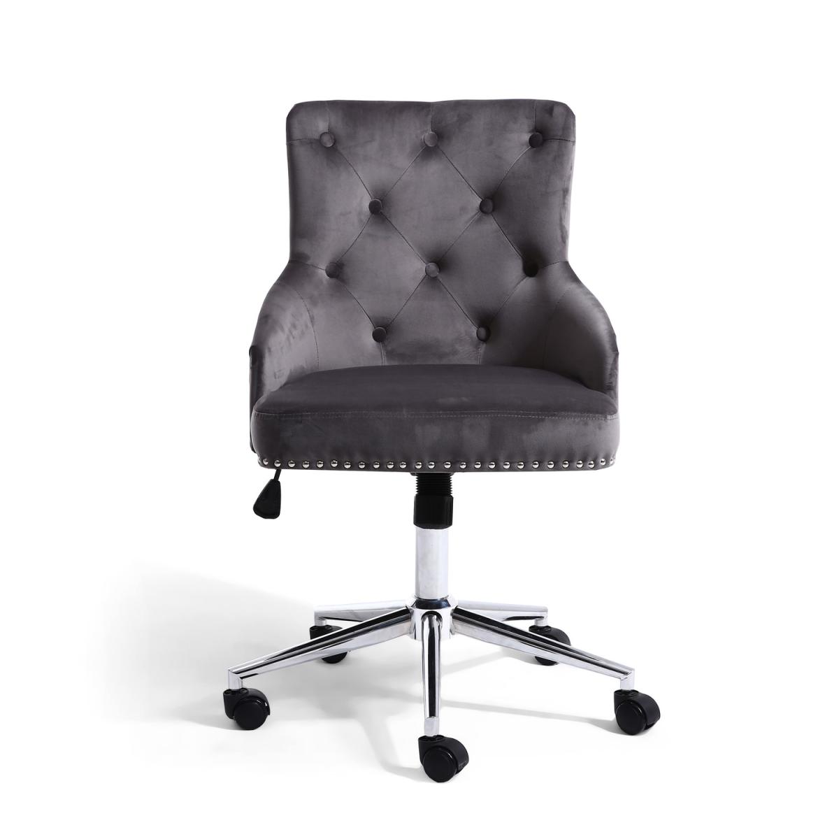 This luxury office chair will enhance the look of any office or study, with styling that offers modern comfort and convenience. There is fabulous button detail on the back, front and sides. The back rest and seat pad are finished with quality fabric available in luxurious Grey brushed velvet and grey or yellow leather effect. The sturdy 5 Star chrome base is height adjustable using a gas lift handle and the quality twin wheel hooded castors allow easy movement.