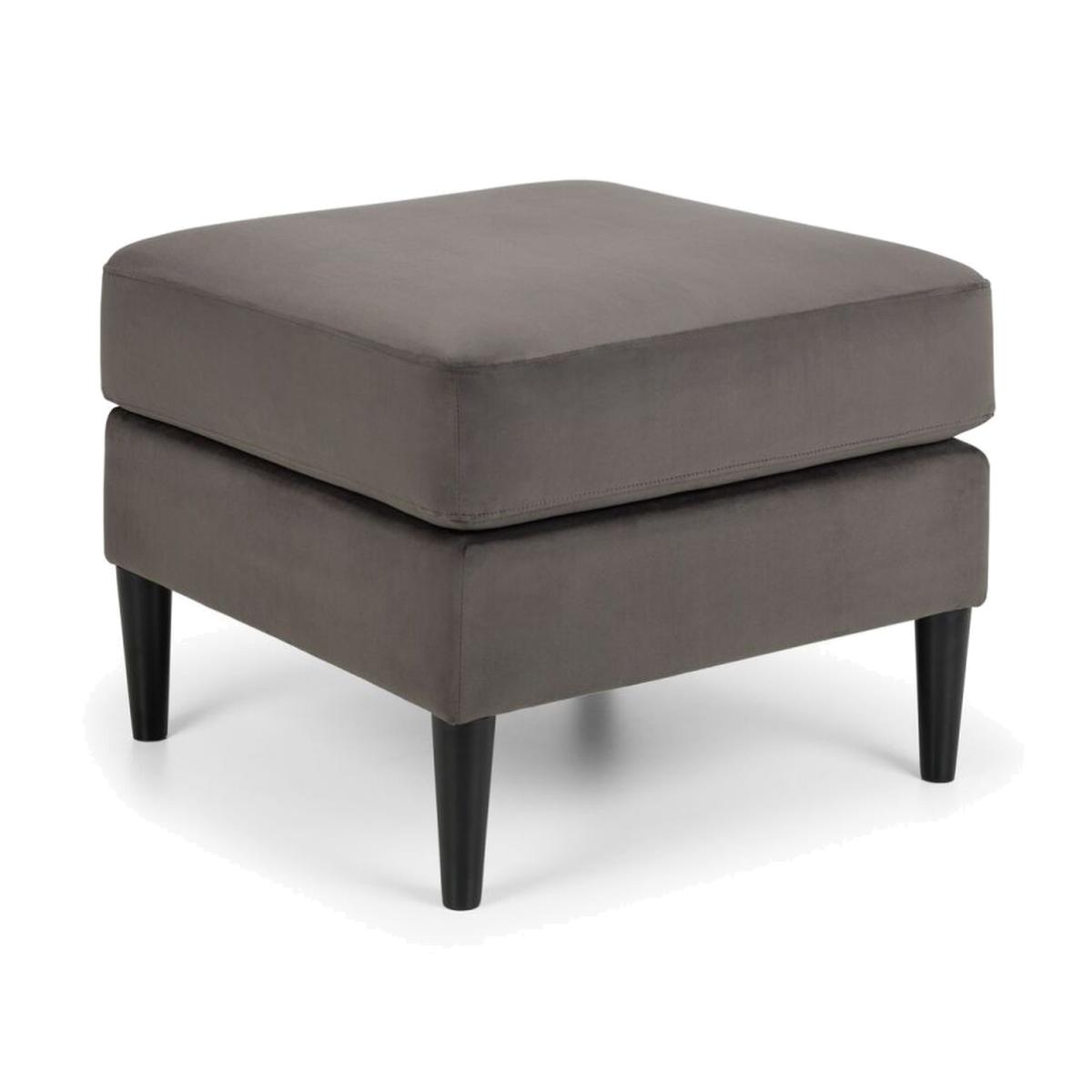 The contemporary Hayward Ottoman is upholstered in luxurious deep pile grey Velvet fabric Accompanied by two leg colour options - black or light oak, this armchair is the perfect design for a range of home decor.