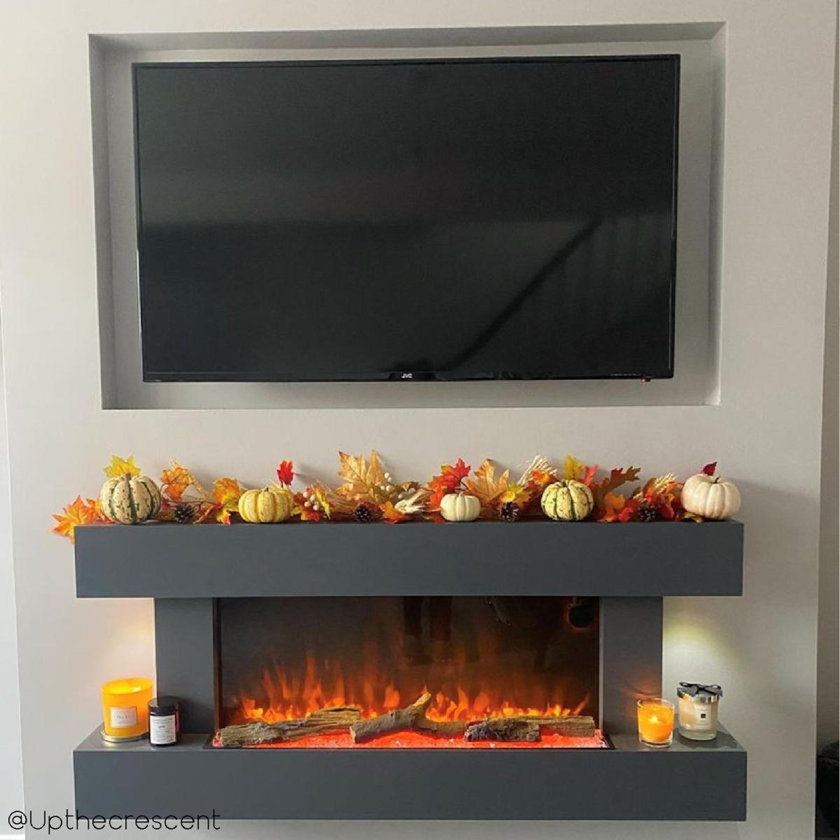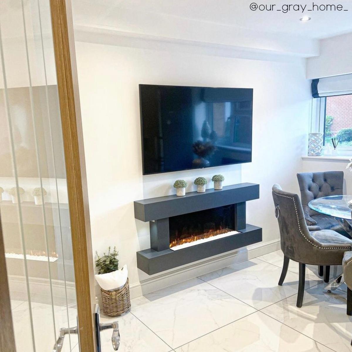 When the nights start drawing in, you want to make your living room as cosy as possible; and there's nothing better than a fireplace to do this. This wall-mounted fire will suit any modern décor style, finished with a stunning dark anthracite grey surround. The open fuel bed consists of small white pebbles, clear crystals or realistic logs, and when combined with one of the three realistic flame effects, guests could be forgiven for thinking your electric fire is the real deal. There's no need for a chimney or flue; simply choose your ideal spot and plug it in. Since the heat exits from underneath the top panel, you can even install this fireplace below a wall-mounted TV for a great effect.