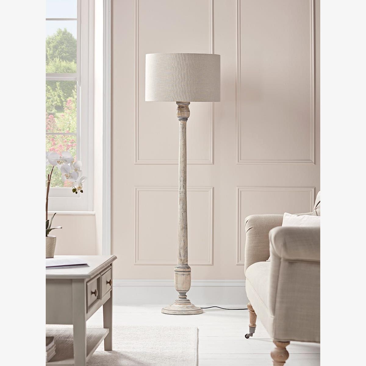Grey Washed Turned Floor Lamp
