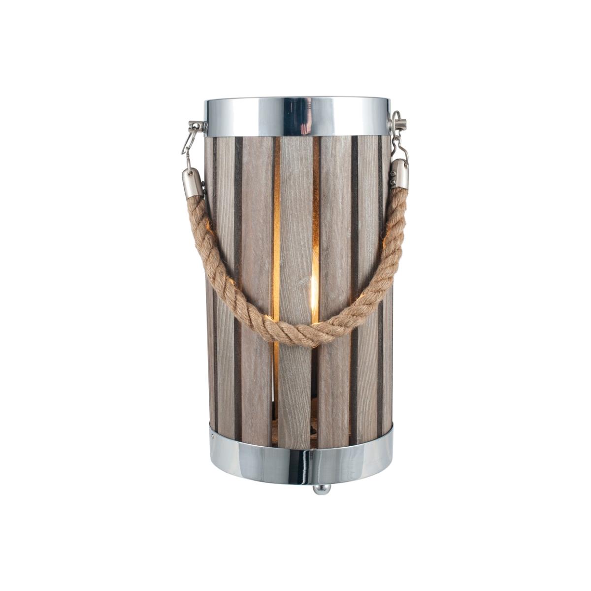 Grey Washed Wood Lantern Table Lamp with Rope Handle