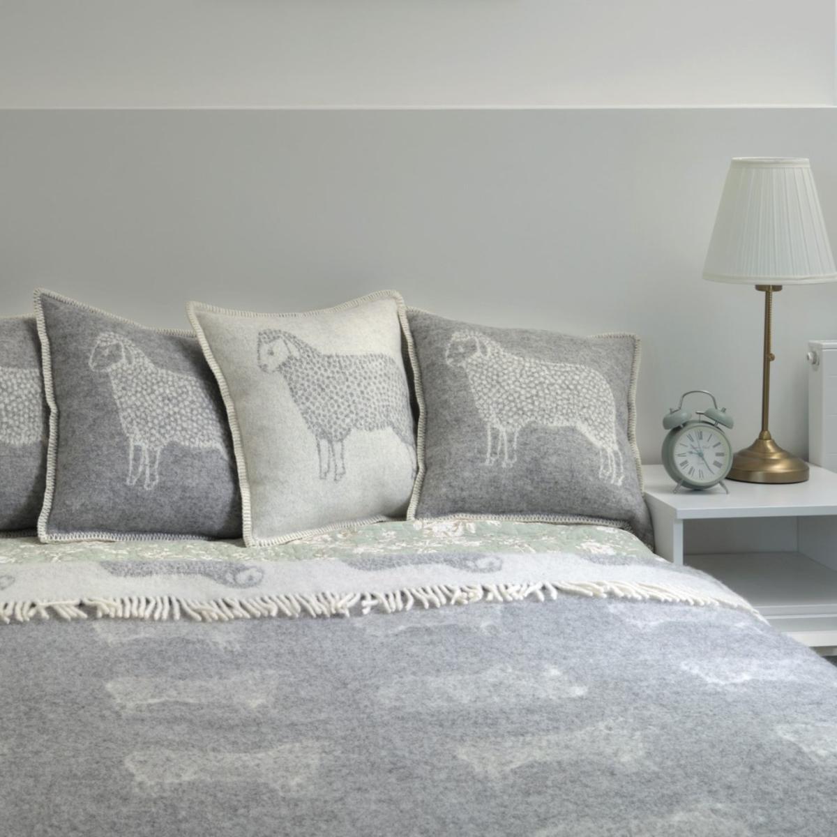 Bring inside a touch of the country with this beautiful Sheep, zip closing cushion cover (pad not included). Made from 100% pure wool in a soft grey and off white, with the inverse colour scheme on the reverse side, you can choose which design best suits your style.