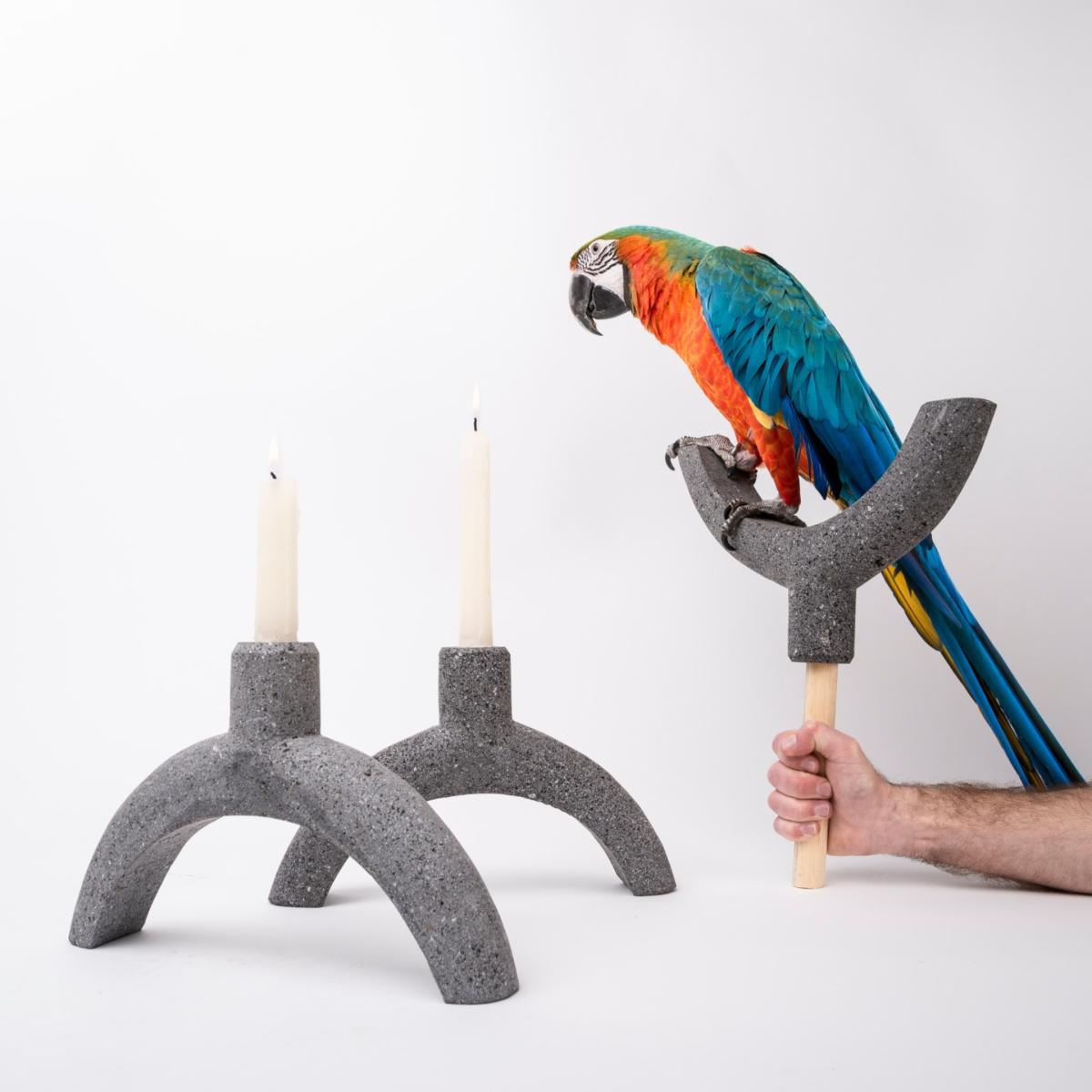 Grey Wishbone Lava Stone Candle Holder And Jacob