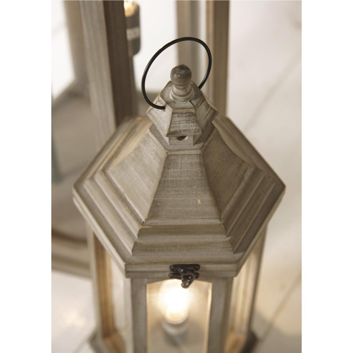 Bring some outdoor styling into your home with our antique grey wood lantern table lamp. The shabby chic effect gives this light source a cosy, homely feel and would look stunning in any interior space.