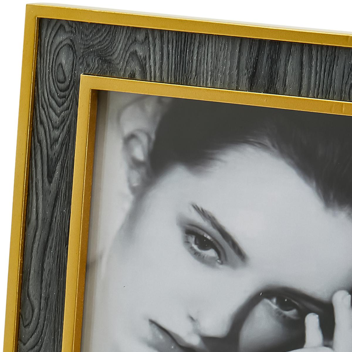 Grey Wood Photo Frame with Gold Trim - Gold and Grey