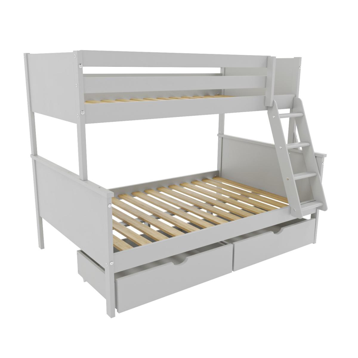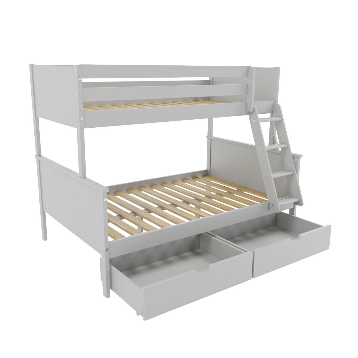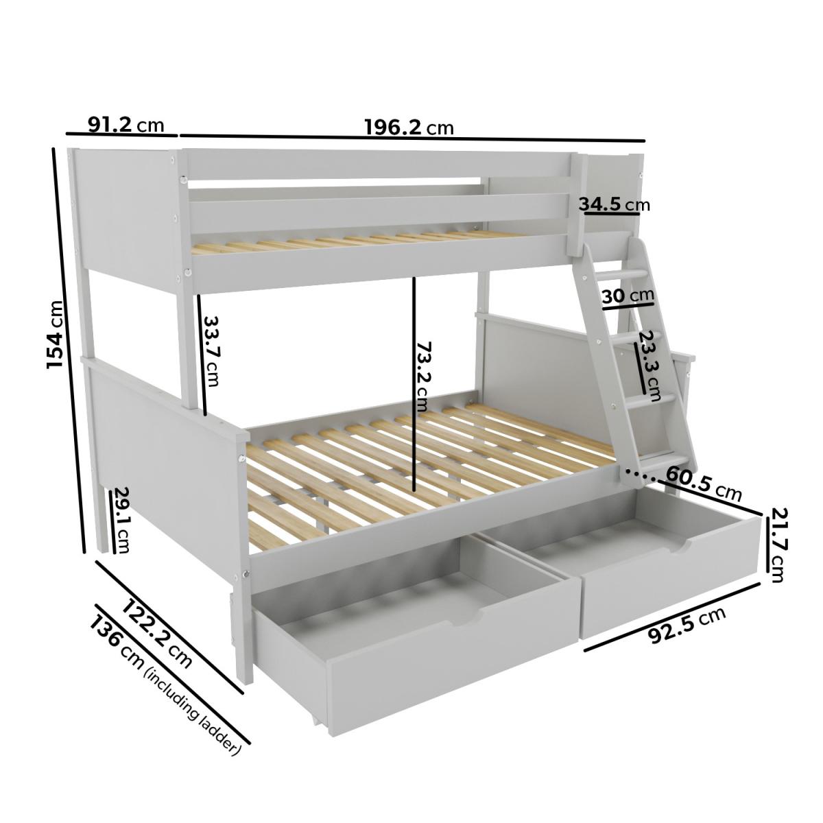 Designed with versatility in mind, this trio bunk bed with storage makes the ideal space-saving solution. With a single bed and a small double bed, it's perfect for last-minute sleepovers at a moment's notice. It's great for adults and safe for little ones too, thanks to the raised sides at the top. With a solid pine construction and a sprung-slatted base, it has been made to last. It fits a UK single mattress and a UK small double mattress, which can be purchased with a 10% discount in our popular bundle package deals.