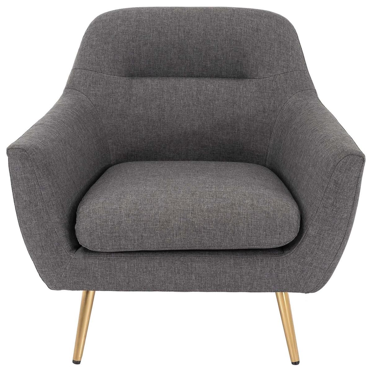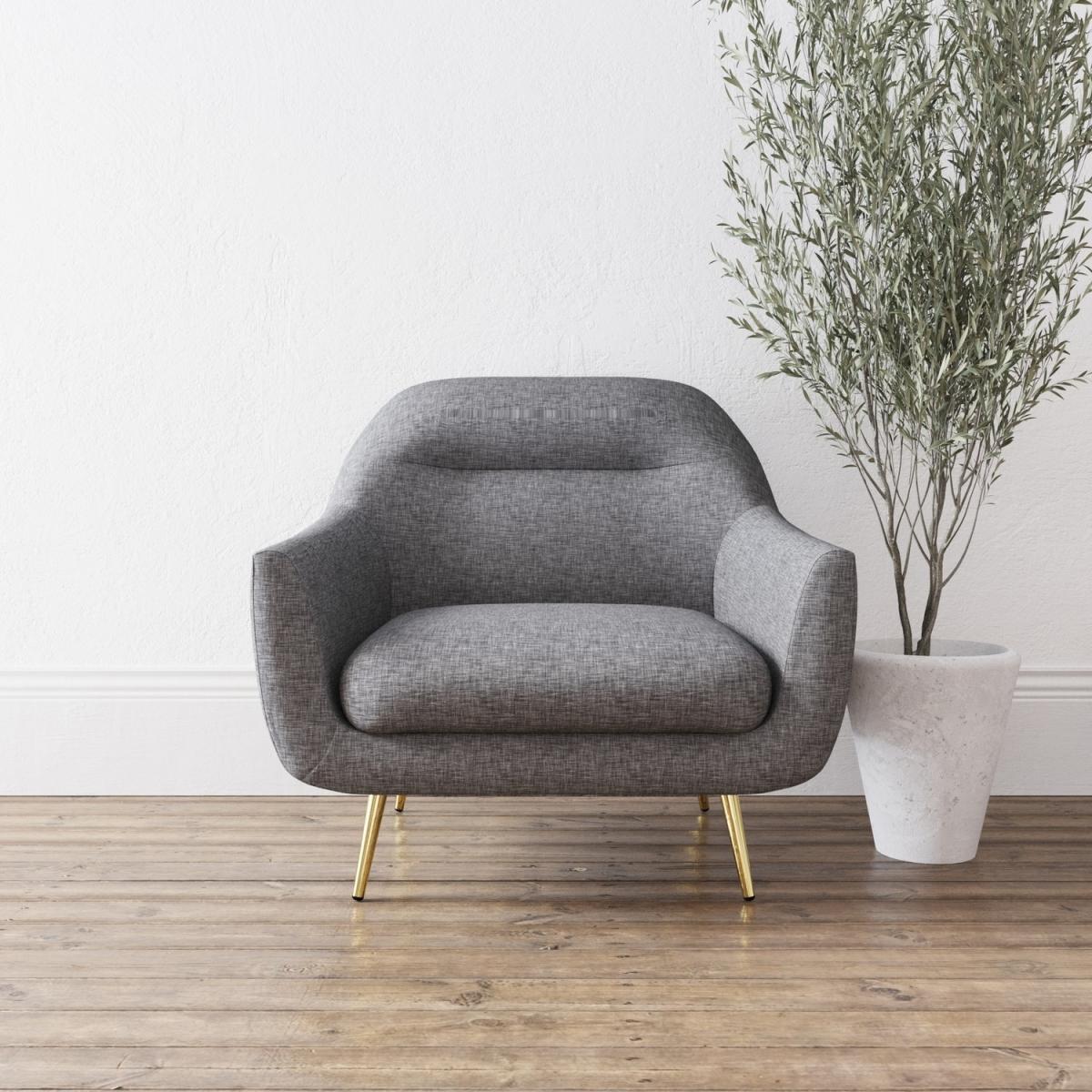 Features we love Mid century armchair in grey woven fabric Modern design and curved back suit all living spaces. Enjoy foam-filled cushions for comfort and support. Minimalist gold art deco legs finish off the chair Matching 2-seater sofa also available. All about me. If you enjoy comfort mixed with mid-century design then the Kiko woven armchair is for you. Its comfy padded seats are upholstered in high quality woven fabric and the back is tastefully finished with stitching detail. Simply attach the tapered gold legs and you are ready to sit back and relax. Need to know. Dimensions. H75 x W79 x D69 cm Product weight. 13.6kg Colour. Grey Chair finish. Woven fabric Leg finish. Brushed chrome Material. Fabric foam and metal Assembly required. Yes just attach the legs