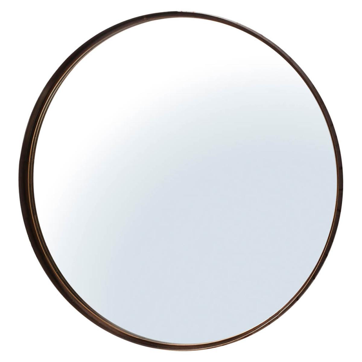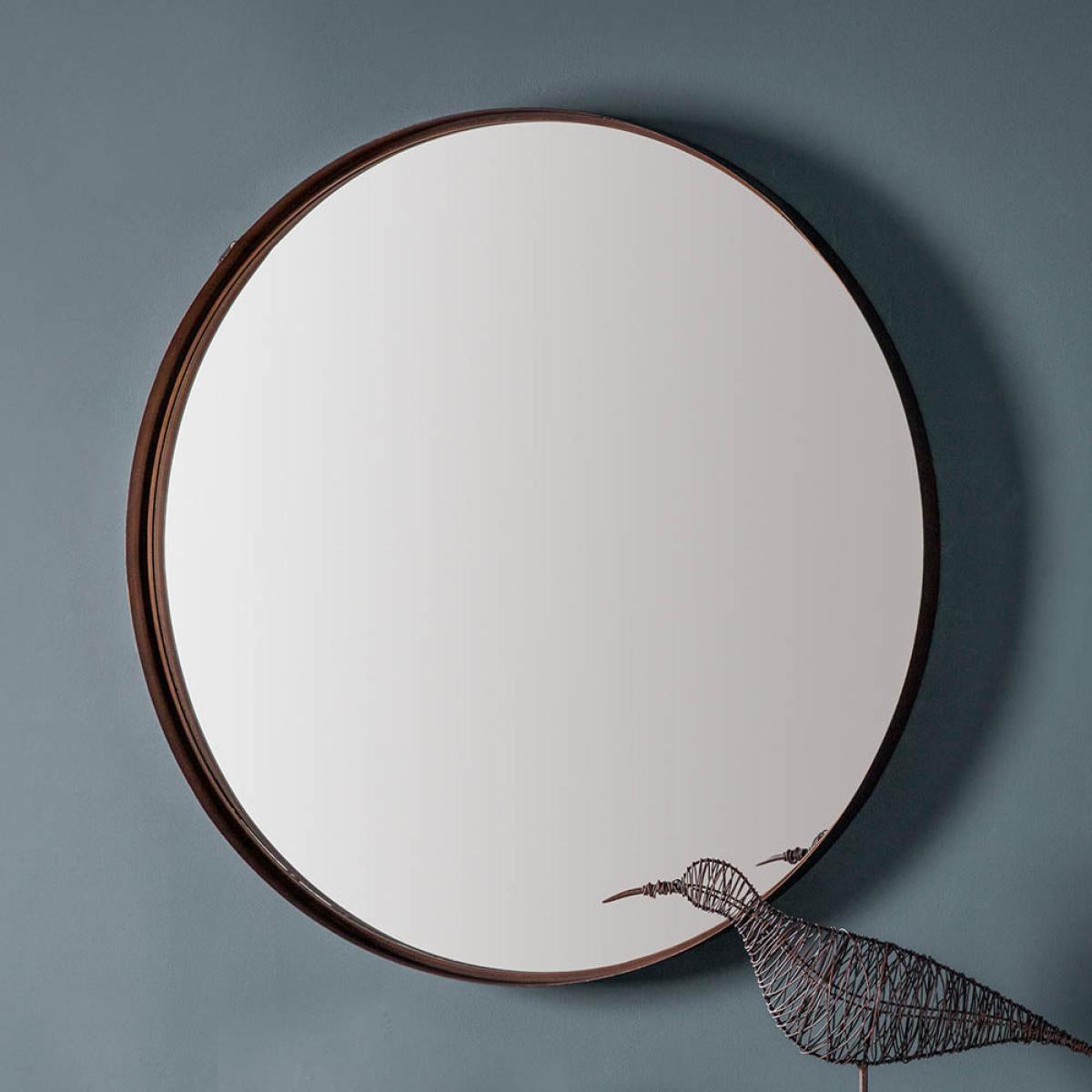 Sleek and stylish round metal framed mirror in an aged bronze finish.