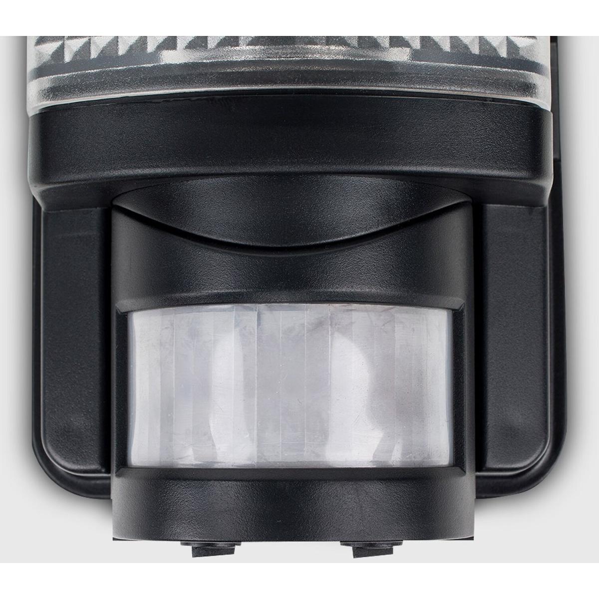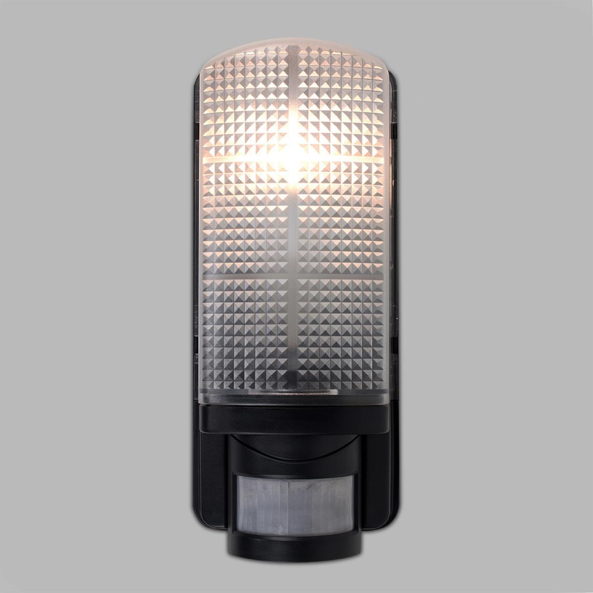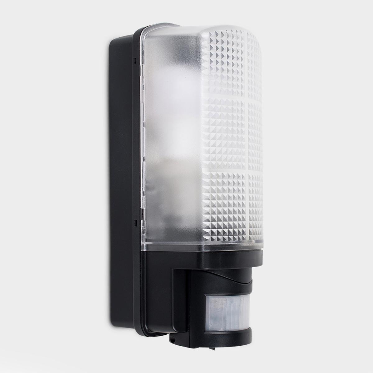 This practical, wall mounted outdoor bulkhead light has a modern jet black flush design with a frosted textured lens. Ideal for lighting gardens, paths, garages, patios, courtyards, decorative porches and driveways. As well as being IP44 outdoor weatherproof rated, this external light also features a practical integrated PIR motion detector - providing extra security for the home and giving peace of mind. The wall-mounted outdoor light comes in a sturdy and weatherproof durable black plastic design and provides a 110 degree detection range as well as a max direction distance of 8 metres. This robust, illuminating external light is IP44 Rated and is fully certified for outdoor installation. Featuring a time delay of 5 secs - 4 minutes. Set to your preference! Adjustable Lux Daylight - Night. 1 x 60w ES E27 GLS Bulb Is Required - Not Supplied