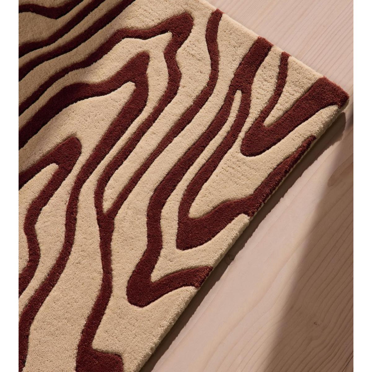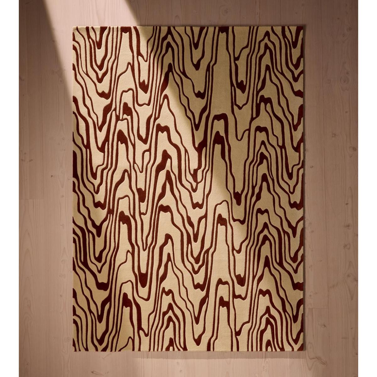 Abstract, hand-tufted lines are inspired by the unique patterns seen on the surface of wood. Inspired by Soho House Berlin, which contrasts playful patterns and wooden details against an industrial backdrop, the Griffiths rug is characterised by a bold, organic pattern reminiscent of wood grain. Its warm rust colouring is designed to complement our made-to-order palette.