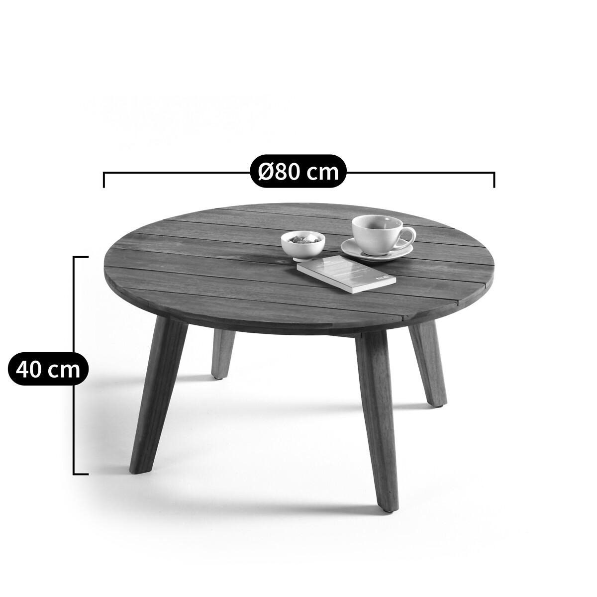 This Grigio acacia garden coffee table is just perfect for creating a lounge corner on the balcony or patio. Product Details • Solid FSC acacia wood • Oiled finish teak colour. FSC® certified wood Quality Info • Acacia is a wood that offers good mechanical properties (good resistance to insects and fungi) and is resistant to bad weather (alternation of dry and humid periods).Dimensions • Diameter: 80cm • Height: 40cmDelivery:. Assembly required. Available for home delivery. • WOOD FROM SUSTAINABLY MANAGED FORESTS. FSC® certified wood comes from forests that are environmentally, socially and economically well managed. Dimensions of parcel:1 parcel • L87 x H1.8 x D87cm, 10kg