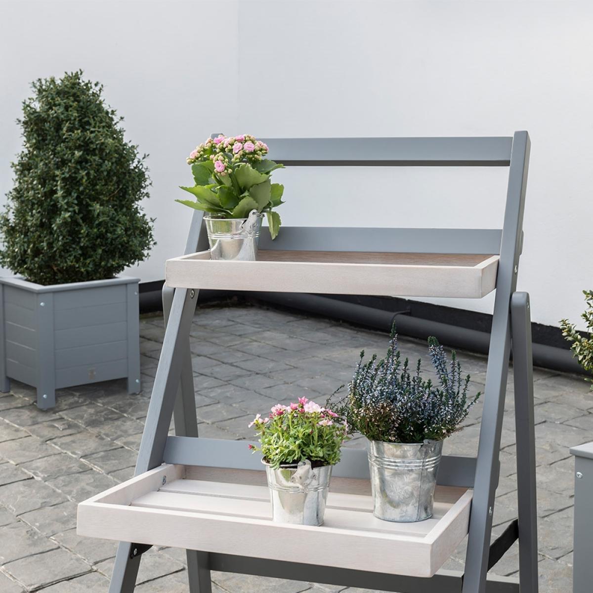 I really like the Grigio folding pot stand for its practical, multi-purpose design and understated colour. It works well in contemporary and rustic garden schemes alike, thanks to its neutral grey finish that complements a range of outdoor styles. Its three-tiered setup is ideal for keeping plant pots organised and easily accessible, while the folding feature makes storage simple during colder months or when space is tight. When styling, consider pairing it with colourful flowers or lush greenery to add visual interest, or use it as a backdrop for outdoor dining or seating areas. Its versatility makes it a great addition to any garden, whether as a functional plant station or a subtle decorative element.