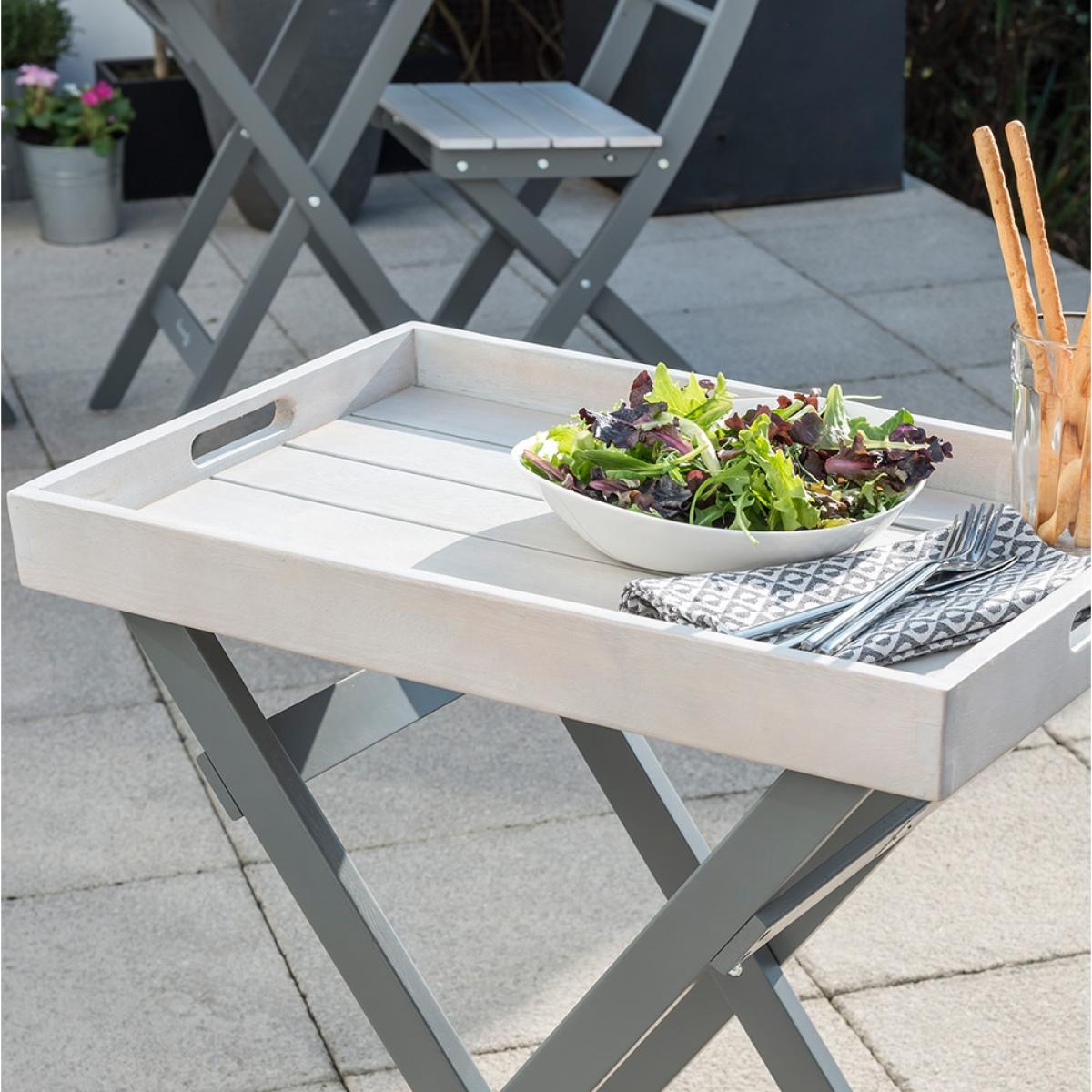 This luxury contemporary style Grigio Garden Butler Table from Norfolk Leisure is guaranteed to add a little wow factor to your Summer get-togethers. Perfect for your afternoon tea parties, simply pop your pot of tea and selection of scones and sandwiches on this handy removable tray and join your friends and family on the lawn. Beautifully crafted from FSC 100% Eucalyptus, this sophisticated folding table offers you a sturdy platform on which to place your home-baked goodies from kitchen to patio! Just be careful with the best china!.
