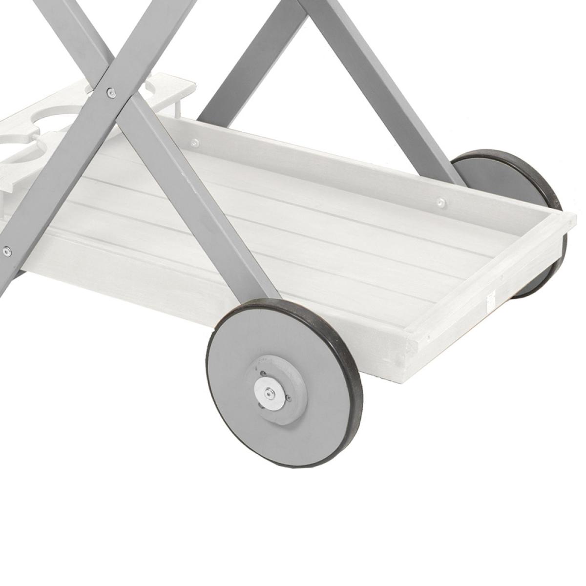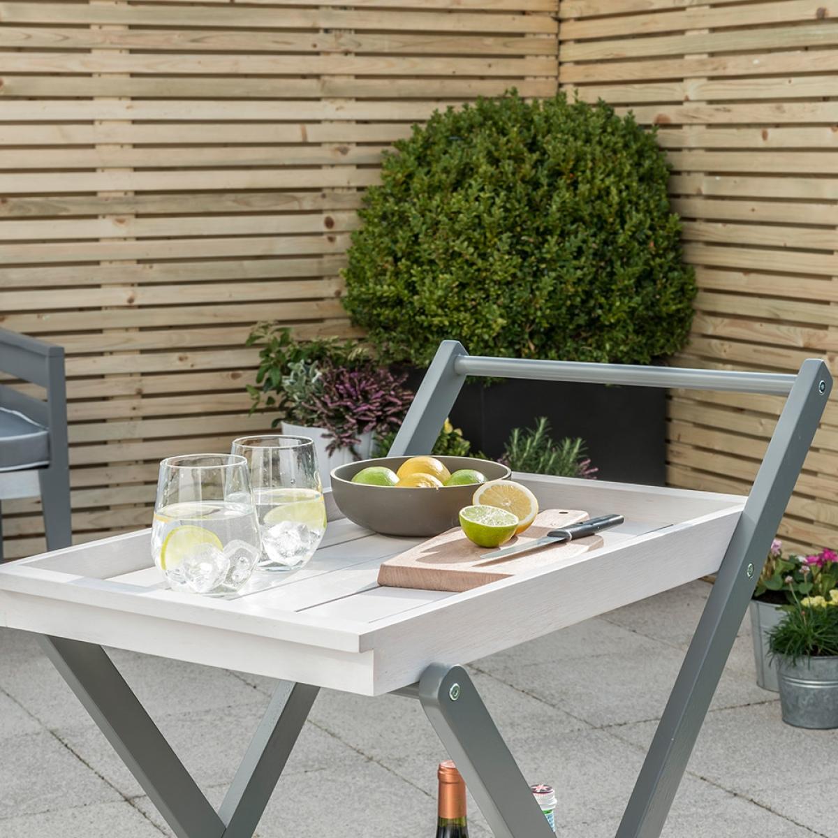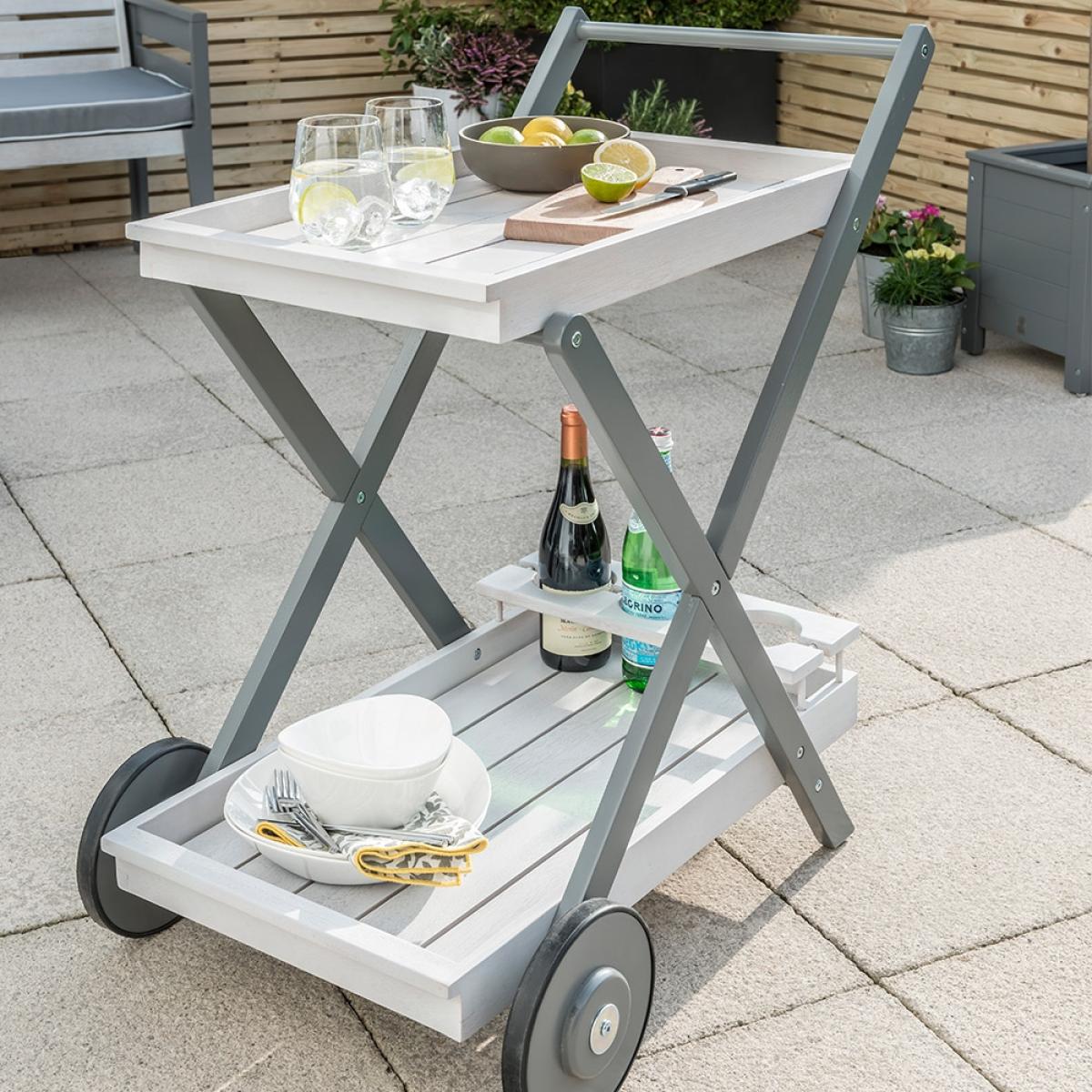I love this trolley for its practical yet charming style, making it a versatile addition to both indoor and outdoor spaces. It works particularly well in relaxed, coastal, or Scandinavian-inspired interiors thanks to its light grey and white colour palette, which adds a fresh, contemporary touch. Practical styling tips include staging it with a mix of glassware and serving pieces for outdoor gatherings or using it as a mobile bar station in a kitchen or breakfast nook. Its straightforward design makes it easy to incorporate into casual or more polished setups, while the wheels add convenience for quick repositioning. Overall, it’s a clever, functional piece that can elevate your drink service within a variety of cosy or modern interiors.
