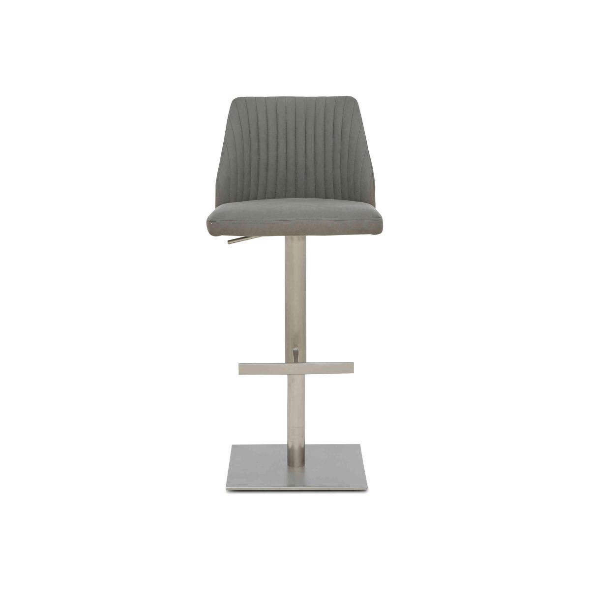 Love sophisticated elegant interior style? It’s time to get acquainted with our fabulous Grigio range. The look is striking – high-gloss, marble-patterned ceramic and brushed stainless steel – and it's a combination that ensures pieces are as durable and family-friendly as they are sleek and stylish. This extensive range offers a wide choice of furniture for living rooms, dining rooms, TV rooms and hallways with many pieces carefully proportioned for more compact spaces. You’ll find dining tables, dining room seating and dining sets, as well as storage pieces, occasional tables and even an entertainment centre. The Grigio range is exclusively available at Furniture Village. Guests and family members alike will love this stylish and very comfortable swivel bar stool. The swivel base makes it so easy to take a seat at a bar table or counter top. Why you'll love it Swivel bar stool is a stylish addition to your bar table dining set. Elegant contemporary style. Grey fabric upholstery with understated vertical stitching. Pedestal base with footrest has a brushed stainless steel finish. Height adjustable. Also available as a set of 4. Exclusive to Furniture Village. This swivel bar stool is part of the Grigio range. What you need to know Cushioned with foam. This bar stool looks fabulous with the Grigio bar table.