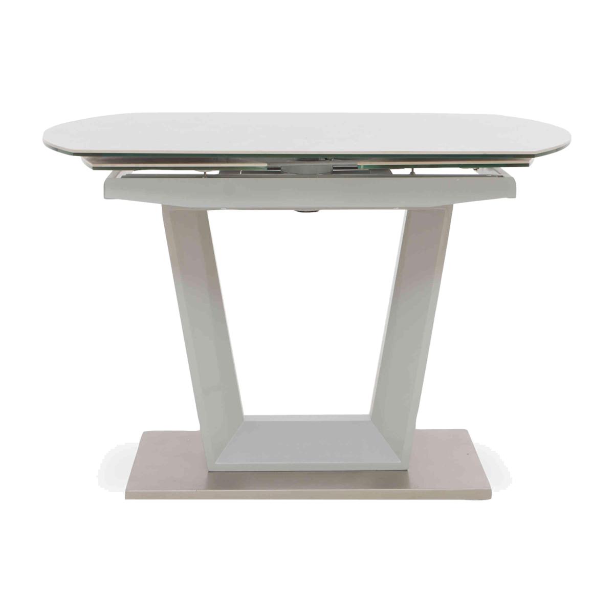 Love sophisticated elegant interior style? It’s time to get acquainted with our fabulous Grigio range. The look is striking – high-gloss, marble-patterned ceramic and brushed stainless steel – and it's a combination that ensures pieces are as durable and family-friendly as they are sleek and stylish. This extensive range offers a wide choice of furniture for living rooms, dining rooms, TV rooms and hallways with many pieces carefully proportioned for more compact spaces. You’ll find dining tables, dining room seating and dining sets, as well as storage pieces, occasional tables and even an entertainment centre. The Grigio range is exclusively available at Furniture Village. With its sleek swivel-motion extension mechanism and glossy marble-effect ceramic finish, this extending dining table is simply stunning. Why you'll love it This sleek swivel extending dining table spins to extend. Elegant modern style. High-gloss, marble-effect ceramic top is both beautiful and practical. Ceramic is highly durable, and heat-, scratch- and chip-resistant. With a clever swivel extension mechanism – the table top rotates to extend. U-shaped pedestal base has a brushed stainless steel-finished plinth. Exclusive to Furniture Village. This swivel extending dining table is part of the Grigio range. What you need to know Swivel extending dining table seats 6 when closed and 8 when extended. Please note that ceramic is not 100% heatproof. We recommend using coasters and placemats at all times. Easy to care for. Simply wipe with a clean damp cloth.