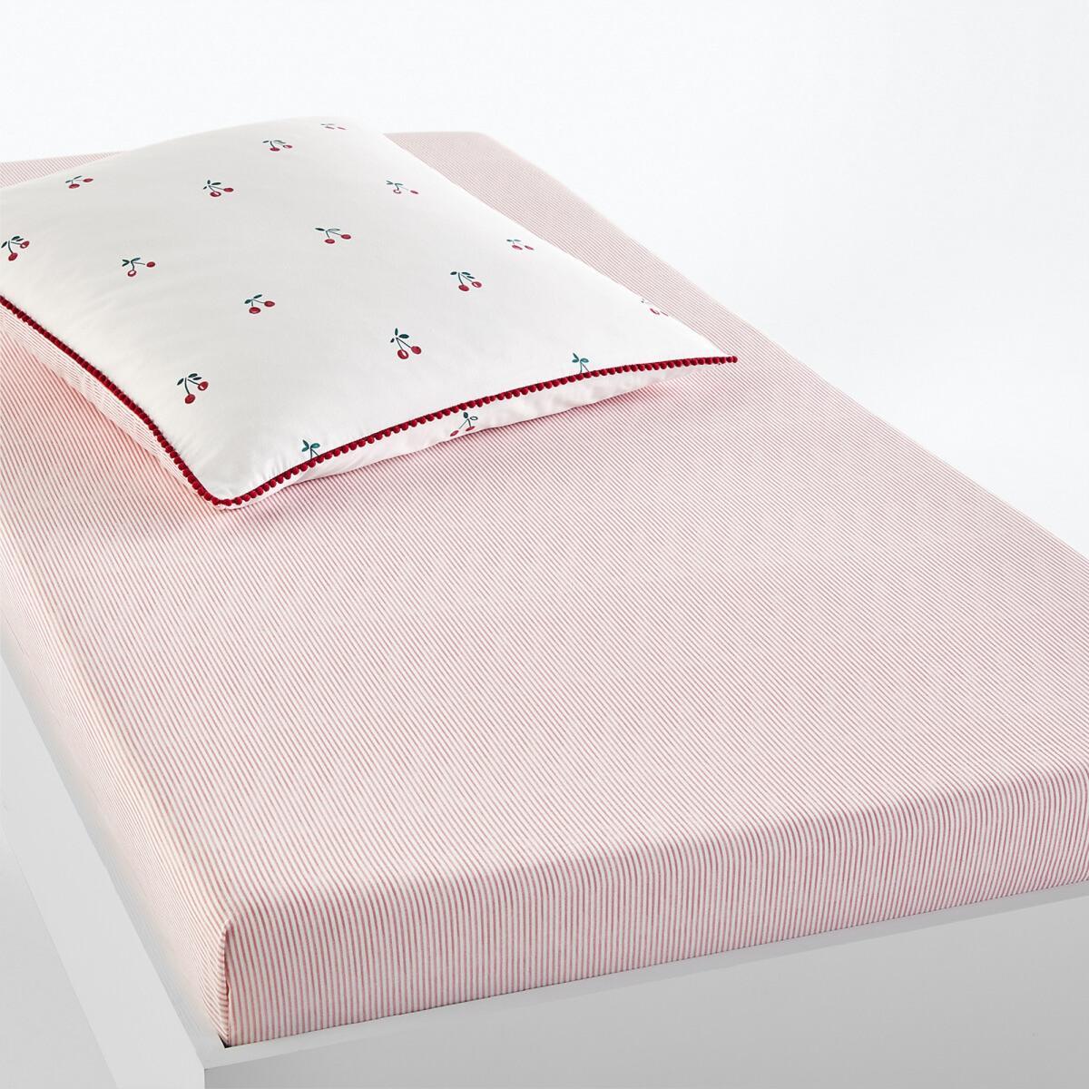 The Griotte organic cotton patterned fitted sheet. Perfect for teaming with the cherry print of the rest of the collection, this sheet features a charming striped pattern!Cotton is a soft, comfortable and light material. It is an essential basic with a good quality / price ratio, resistant to use and washing. Product Details. 100% organic cotton. Free from pesticides or chemicals, organic agriculture protects the environment and the health of those who harvest it. 57 threads/cm2. Striped print Browse the Griotte collection online at La Redoute. Switch up your look for each season by mixing and matching this set with items from the plain Scenario collection. Care. Machine washable at 60°Dimensions. 90 x 140cm: Adjustable bed. 90 x 190cm: Single. 140 x 190cm: EU Double. 160 x 200cm: Double Additional Information. This product labelled STANDARD 100 by OEKO-TEX® - certificate no. CQ 1102/4 IFTH follows a certified and controlled manufacturing process which is respectful of your skin. The STANDARD 100 by OEKO-TEX® is the first label that meets the needs of consumers in terms of human ecology. It guarantees the absence of harmful substances or those potentially presenting a risk to health.