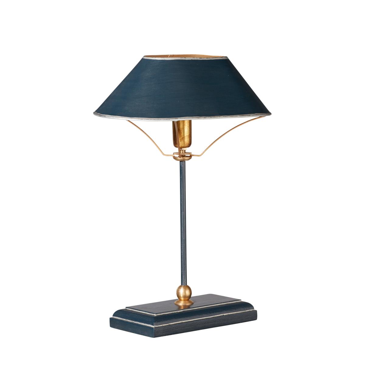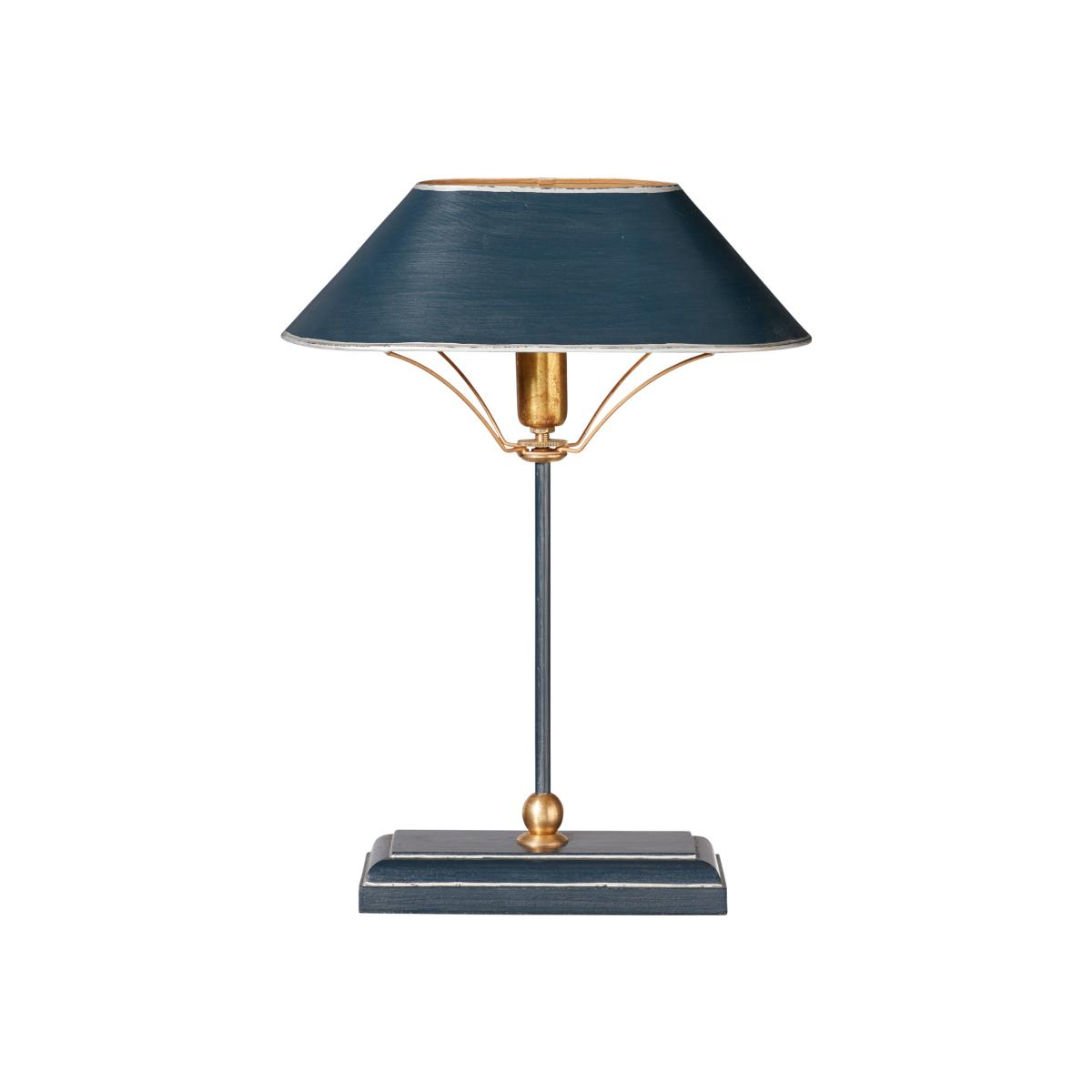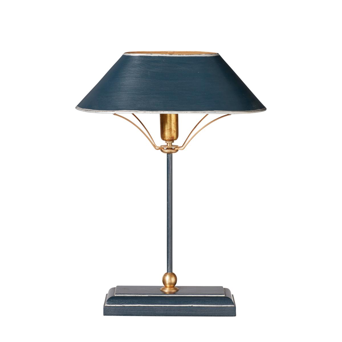 An antique-style small metal table lamp and shade, handmade from brass and iron. The petite yet elegant stature of our Grisewood Lamp makes it perfect for a desk in a home study or library, or as a small bedside lamp.
