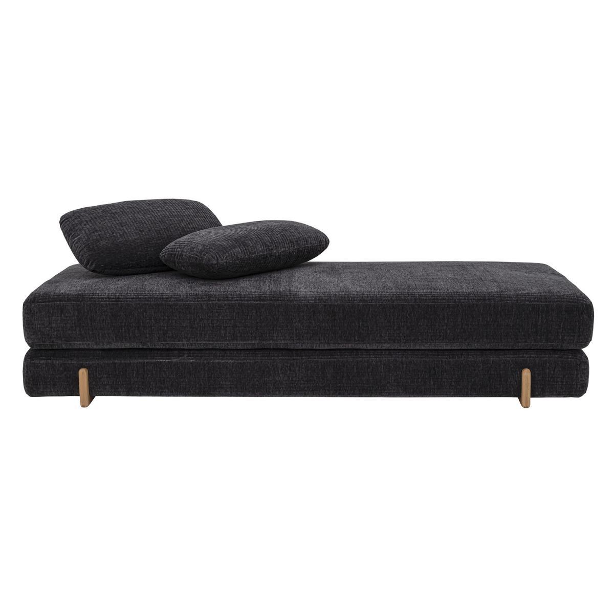 In the purest Scandinavian style, this lounge chair with clean lines combines a natural ash base with an elegant, thick and soft chenille fabric. This lounge chair consists of two mattresses on top of each other, on which two large cushions are freely placed. This multi-purpose bench can convert into a sofa bed for 2 people, ideal for guests. You just need to place the mattresses side by side. An invitation to idleness, this daybed is an island of peace for a well-deserved break in the middle of the day, or for a guest who is sleeping over. Its large size means you can sit alone or with others, stretch yourself out languorously, or coil up in various positions. This lounge chair will help you create a chic and relaxing corner in a lounge, at the foot of a bookcase, or in an entrance hall, dressing room or bedroom.