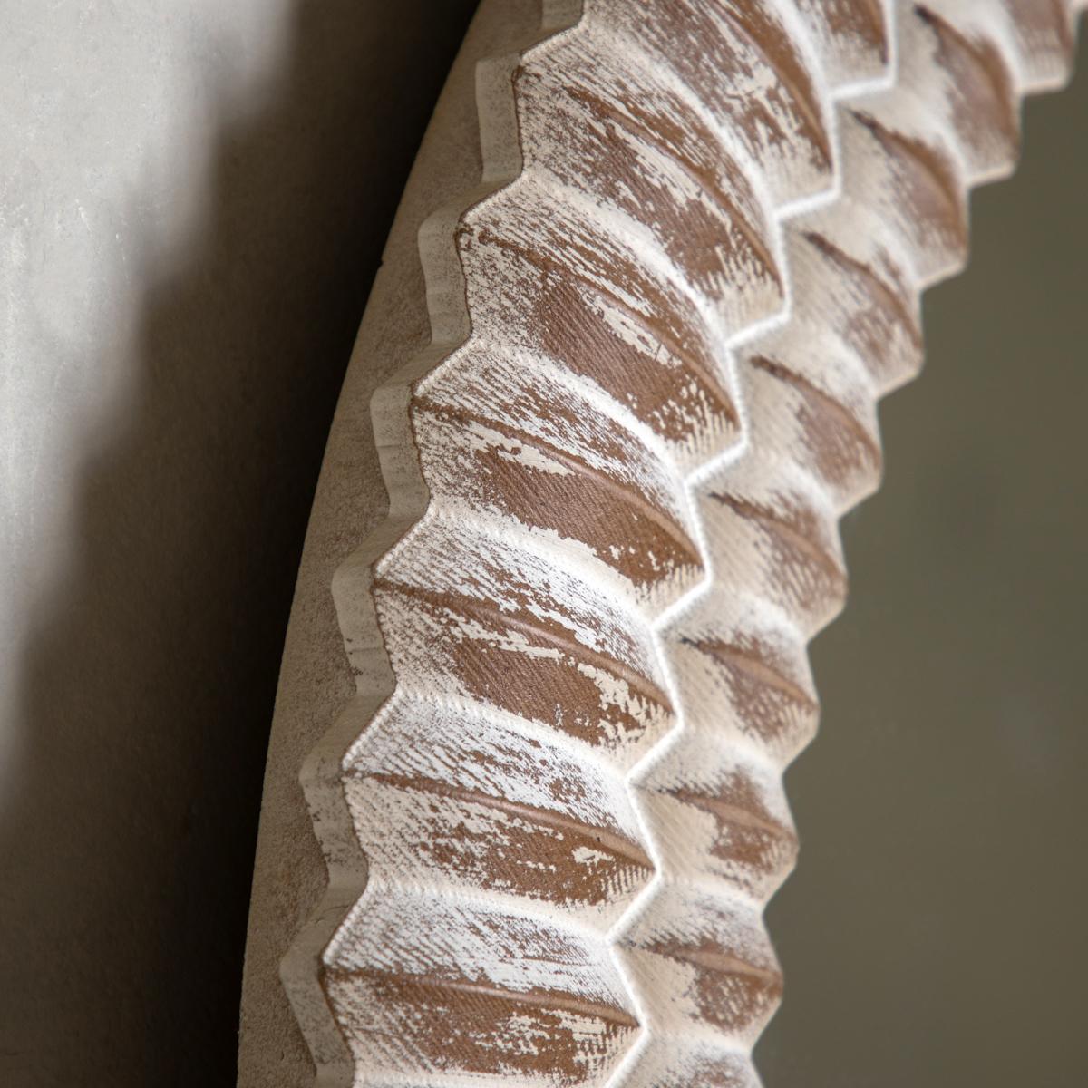I love the round shape and textured frame of this mirror - it adds subtle visual interest without feeling too busy. Its white wash finish gives it a relaxed, coastal vibe, making it a versatile piece for both modern and rustic interiors. It works really well above a basin in a bathroom, in a hallway, or even as a statement piece in a bedroom. For styling tips, try pairing it with soft linens or natural fibres to emphasise its light and airy feel. You can also experiment with layering it with smaller mirrors or artwork to create a curated gallery wall. Overall, this mirror's understated charm makes it a practical yet stylish addition to a variety of spaces.