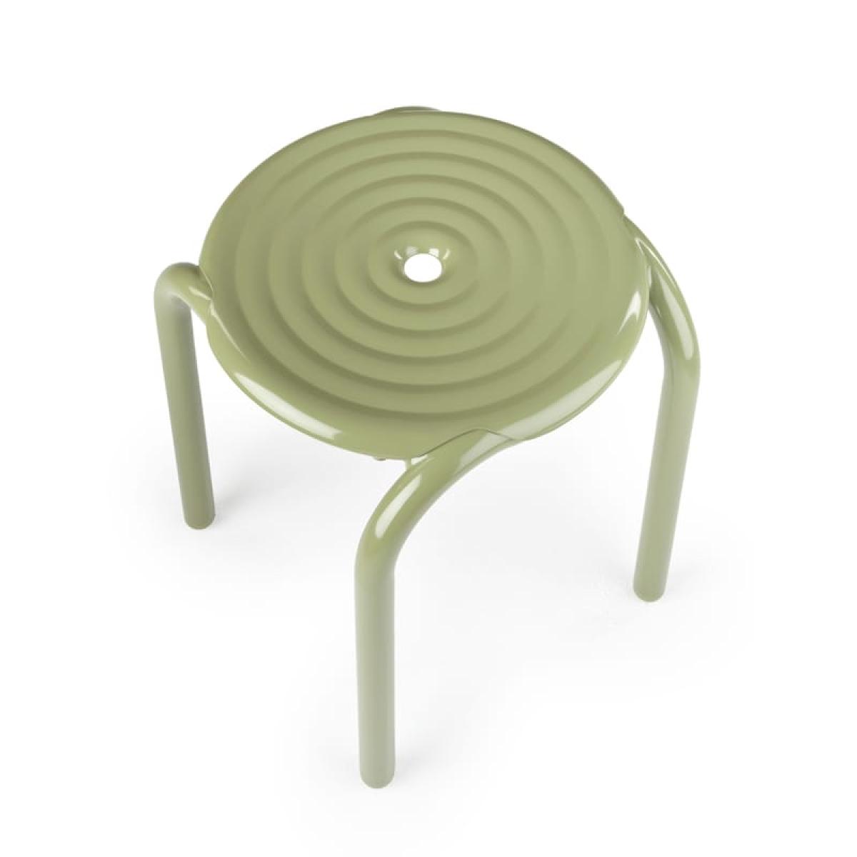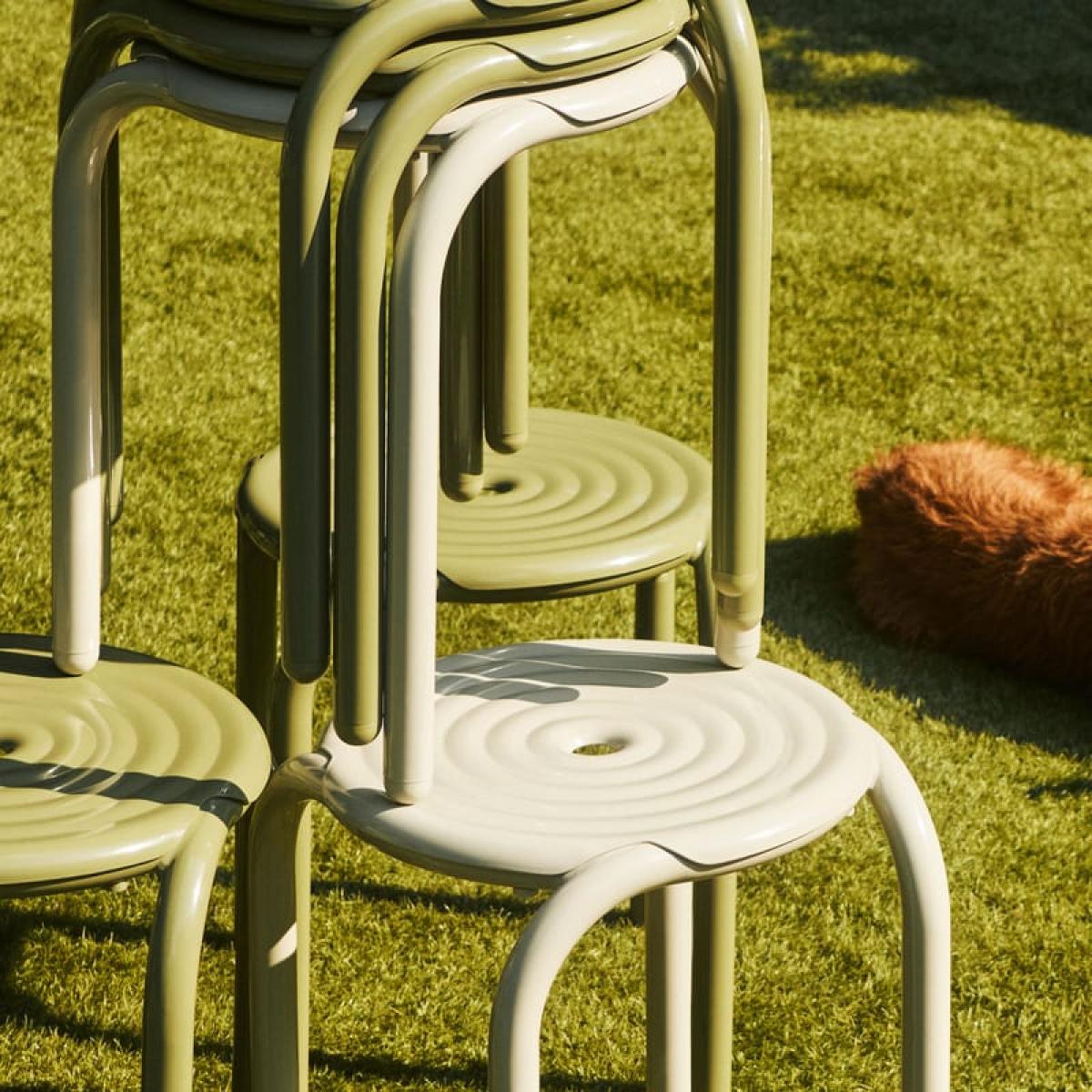 GROOVE: outdoor design excellence by Tom DixonA high-end outdoor Stool with iconic designTom Dixon, a leading figure in contemporary design, once again pushes back the creative boundaries with GROOVE, his first outdoor furniture collection. The GROOVE outdoor Stool combines technological innovation with timeless elegance. Inspired by the bucket seats of 1950s sports cars, it boasts a "swollen", sculptural and graphic design, marked by Art Deco-inspired raised grooves that reinforce both its aesthetic appeal and its solidity. Shaped using an innovative process, this designer garden stool is lightweight, stackable and ultra-resistant. Its high-grade aluminum, powder-coated without solvents or VOCs, ensures optimum protection against corrosion and weathering. Suitable for both indoor and outdoor use, it blends perfectly into an elegant terrace, a designer garden or a contemporary interior space. A technical challenge in the service of excellencePresented as an evolution of the HYDRO Chair (Tom Dixon, 2021), the GROOVE outdoor Stool is the fruit of over a decade of research into the properties of Aluminium. Creating an outdoor Stool that is at once stylish, sturdy and lightweight represented a real technological challenge. To shape GROOVE, Tom Dixon and his team used a superplastic forming process borrowed from the automotive industry. This innovative process involves heating aluminum to a high temperature, then blowing it into a mold to produce complex curves impossible to achieve using traditional methods. Once formed, the Stool is laser-cut by robots to guarantee absolute precision. This advanced engineering gives it exceptional lightness without compromising its sturdiness, making it both functional and sculptural. Elegant, durable outdoor furniturePerfect for a designer garden dining room, terrace or modern interior, the GROOVE Stackable stool combines aesthetics and practicality. Available in two sophisticated shades - Moss (deep green) and Putty (soft beige) - it suits all environments, from sleek minimalism to warmer spaces. Its light weight makes it easy to move around, while its stackability enables optimal Storage, an asset for small spaces and professionals in the hotel and catering industry. Designed to last, it comes with a 3-year warranty and is environmentally friendly thanks to the recyclable aluminium used in its manufacture. Why choose the GROOVE Stool? High-stool design by Tom Dixon. Weatherproof, ideal for indoor and outdoor use. Stackable and lightweight, perfect for optimizing space. Environmentally-friendly, solvent-free, VOC-free premium finish. Iconic, ergonomic design inspired by Art Deco and vintage automobiles. Treat yourself to an elegant and durable Stackable stool, designed to enhance your outdoor and indoor spaces. The GROOVE garden stool is much more than just a seat: it's a veritable design sculpture, combining style and performance. In detail: Variation : Licken green Brand : Tom Dixon Designer : Tom Dixon Type : Stool Colour :Licken green Material : Aluminium, high-quality powder coating (solvent and VOC-free) Dimensions :Ø 47.8 x H 45.1 cm Weight : 4.4 lb Characteristics : For indoor and outdoor use (hard-wearing, corrosion-resistant) - Stackable - 3-year warranty Show less