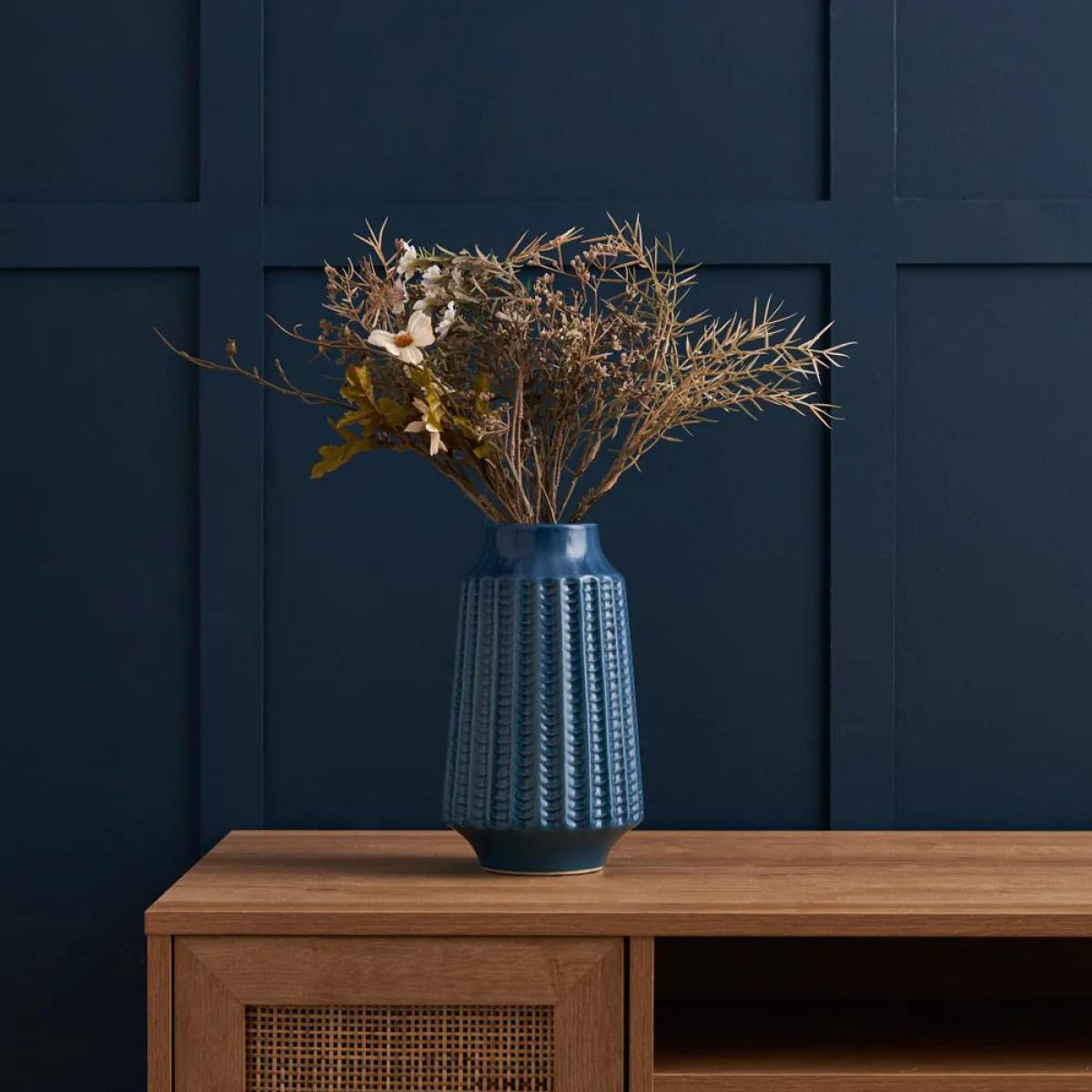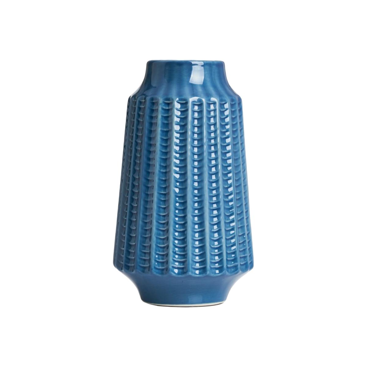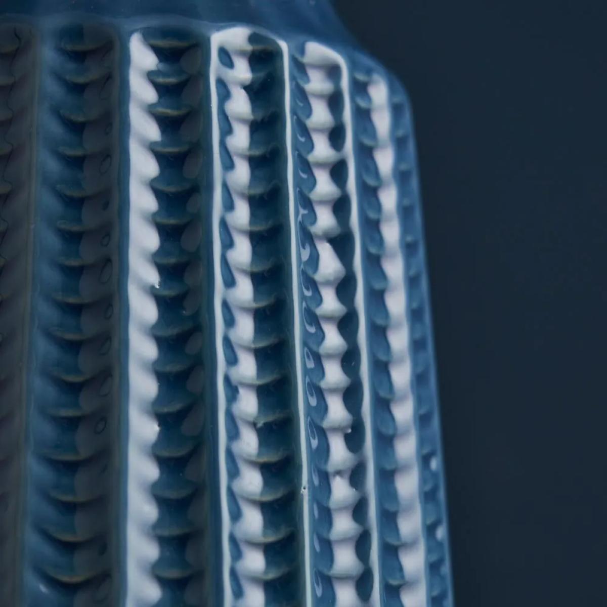 Introduce a calming and serene atmosphere to your home with our Grooved Ceramic Vase in Blue, a soothing and stylish piece that complements various decor styles. The grooved pattern offers a visually captivating texture, while the blue colour evokes a sense of tranquillity. Its medium size allows for versatile placement, whether you choose to display flowers or use it as a focal point and a pop of colour in your decor.