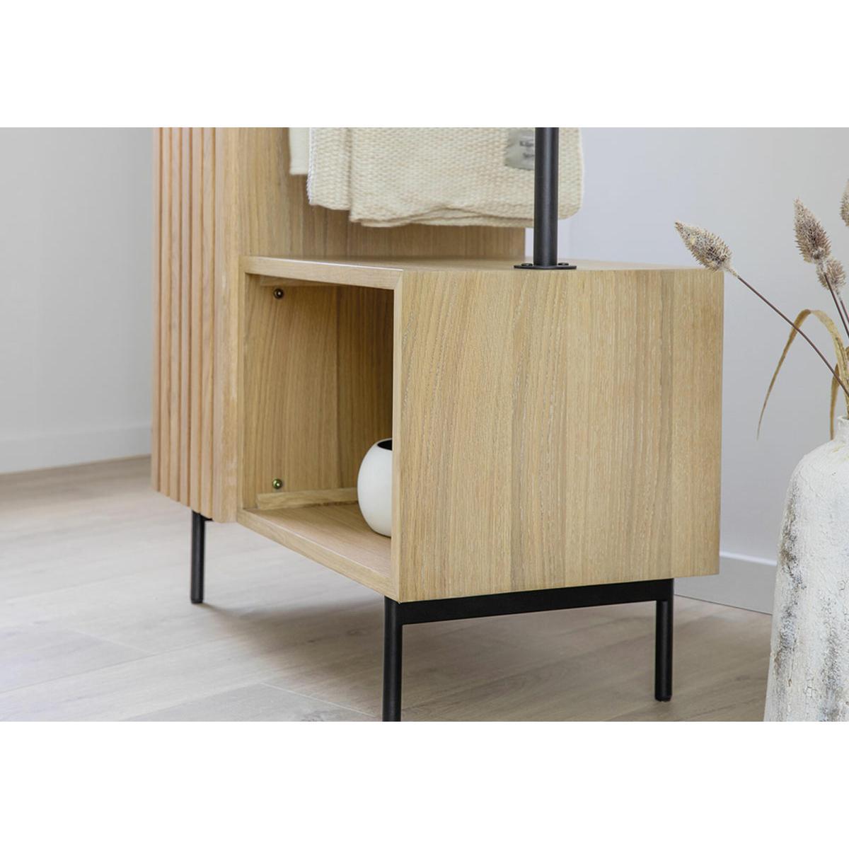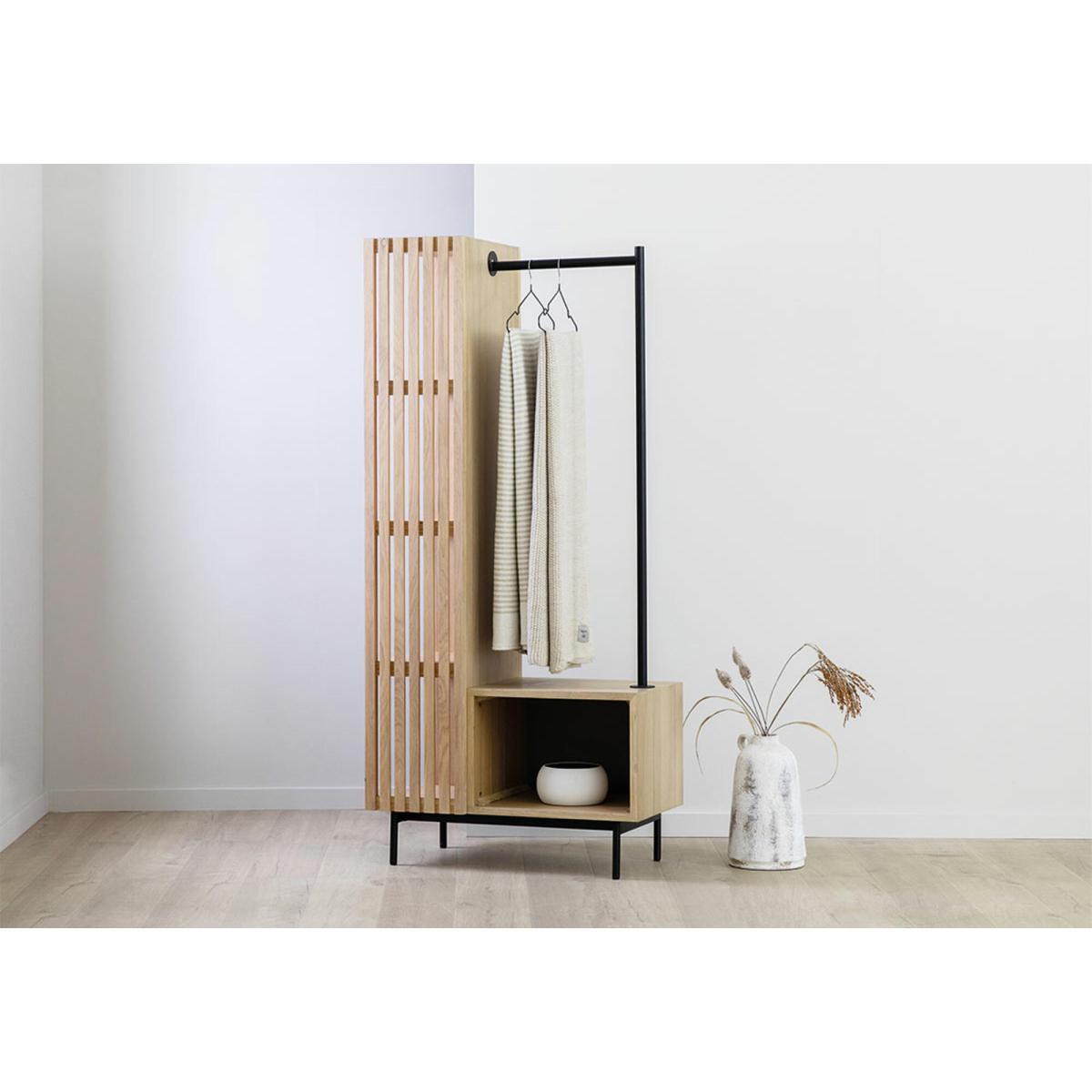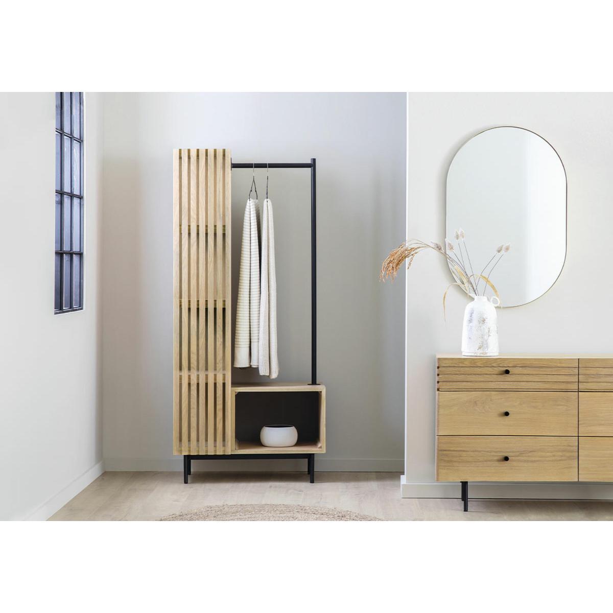 I’m a fan of this rail because its mix of black metal and light oak brings structure without feeling heavy, making it ideal for hallways, bedrooms or even a spare room. It works particularly well in Scandi-inspired or industrial schemes, where the simple lines and natural tones complement neutral walls and minimalist furniture. For styling, keep it functional: hang a couple of everyday coats or lightweight jackets on wooden hangers, use the lower shelf for a woven basket of scarves or shoes, and balance the whole look with a small mirror or a simple side table beside it.