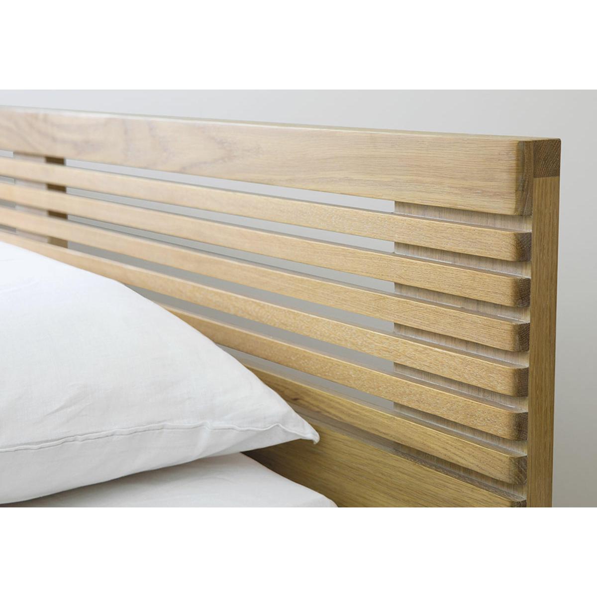 I’m drawn to the Groover king for its clean-lined silhouette and warm oak finish, which makes it equally at home in Scandi, Japandi or pared-back contemporary schemes. Its low profile means you can layer up on bedding without it looking top-heavy - think crisp white sheets, a knitted throw and a couple of accent cushions in muted tones. For practical styling, flank it with slimline bedside tables or a floating shelf to keep essentials up off the floor, and tuck a woven basket underneath for extra blankets or shoes. A round mirror or piece of minimalist wall art above the headboard will pick up on the slatted detail and keep the overall look balanced and uncluttered.