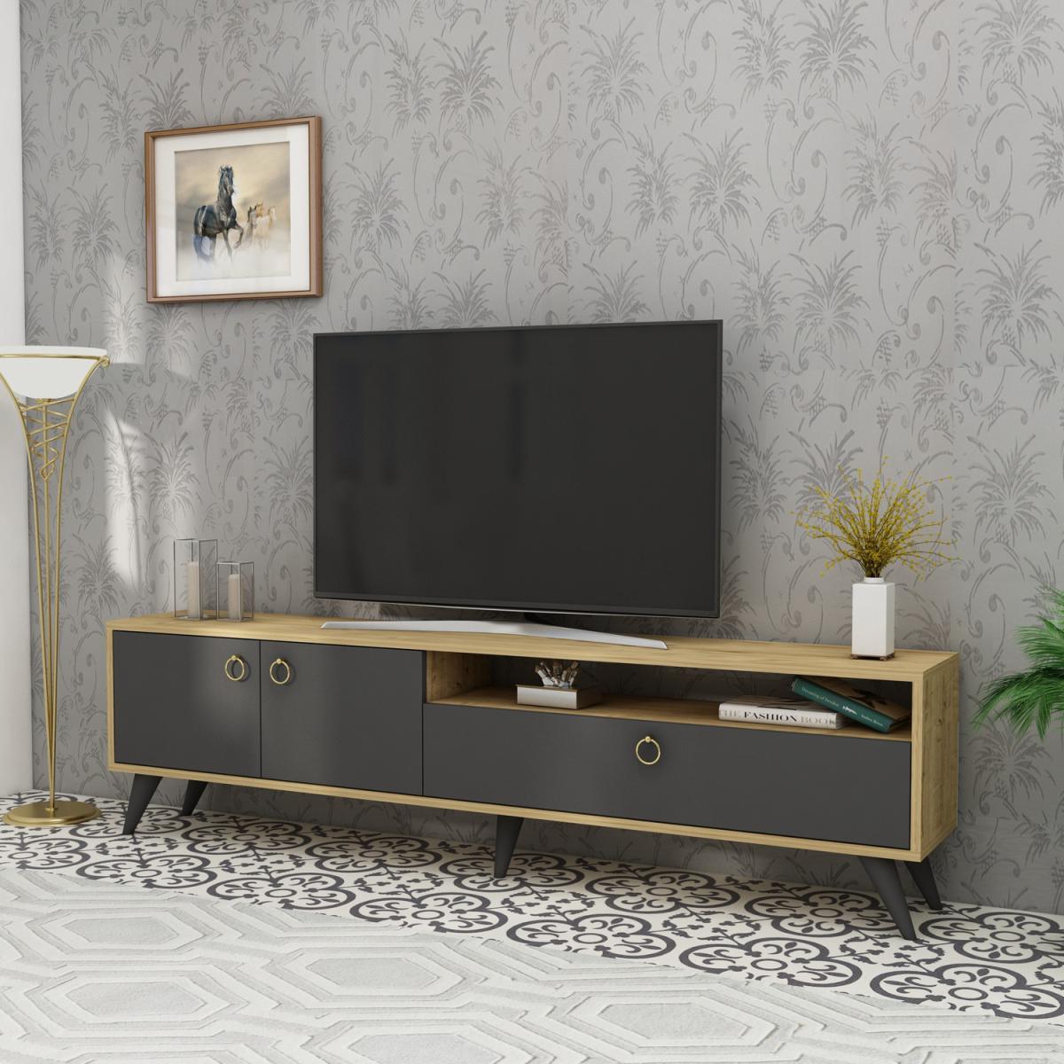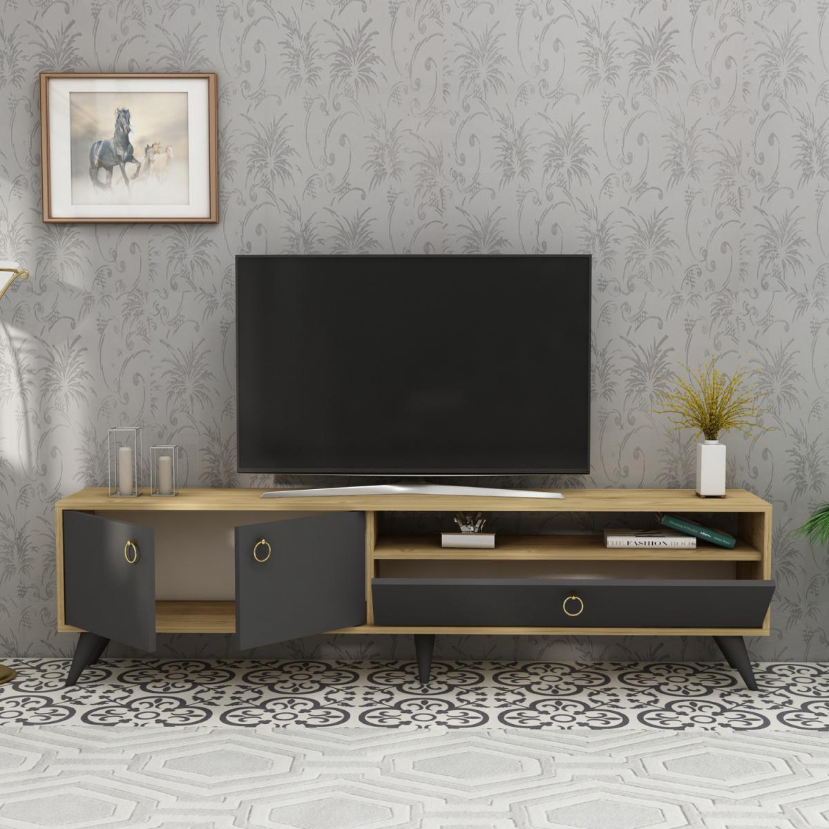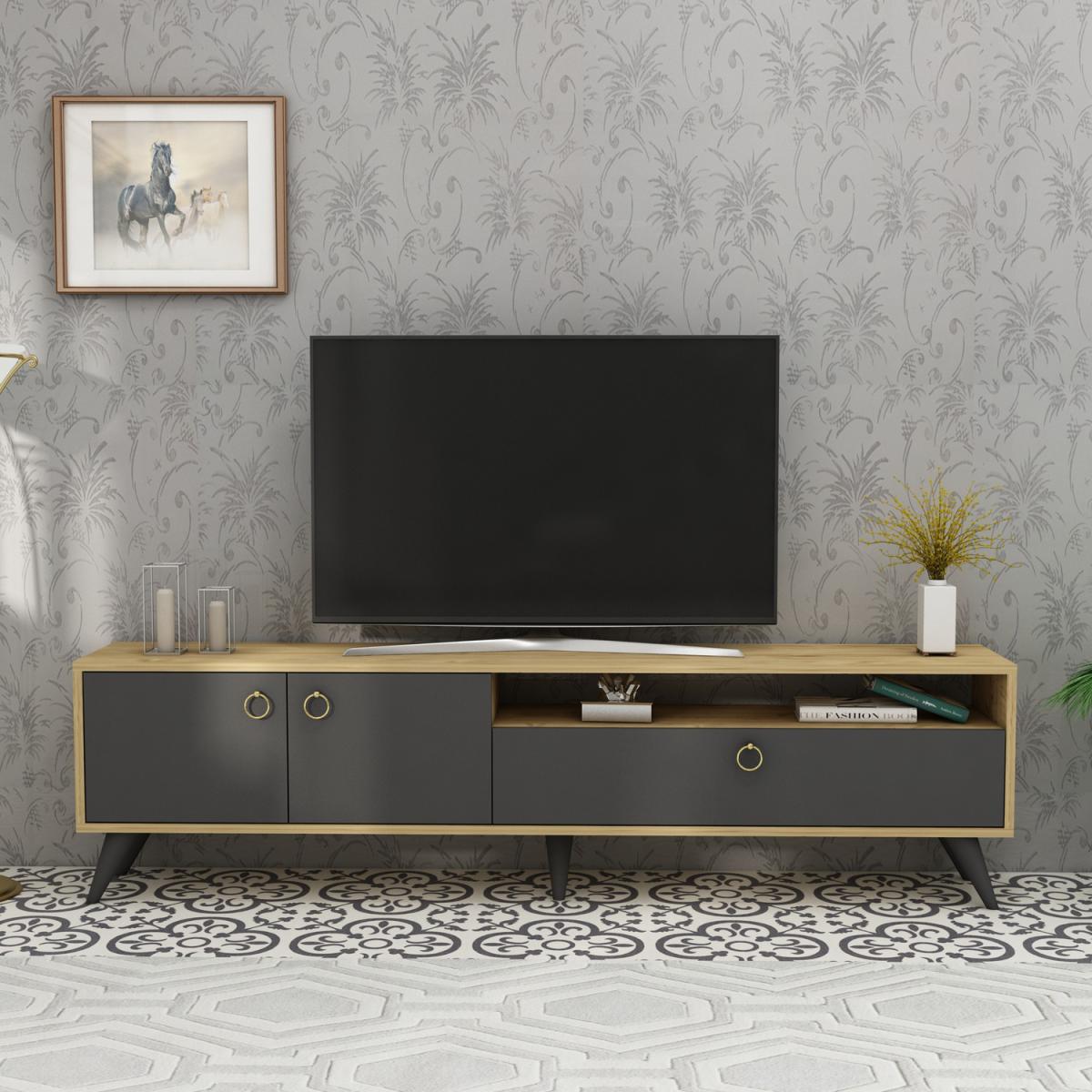 Grosso TV Stand and Media Console - Sapphire Oak & Anthracite