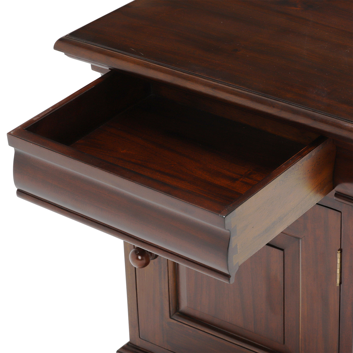 The Grosvenor mahogany bedside table offers a classic, timeless look that works beautifully in traditional or heritage-inspired interiors. Its rich wood tone adds warmth and sophistication, making it a versatile piece for bedrooms with antique, vintage, or country decor. I love to style it with simple, elegant accessories like a vintage lamp, a small stack of books, or a decorative tray to enhance its historic charm. Practical tips include using the drawer for essentials like reading glasses or chargers, keeping surface clutter-free to showcase its craftsmanship, and pairing it with complementary furniture pieces in similar or contrasting wood tones for a cohesive look. Its compact, robust design makes it both functional and a real statement piece in any well-curated bedroom.