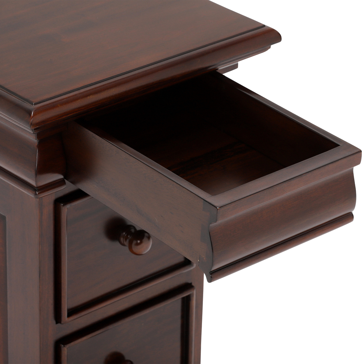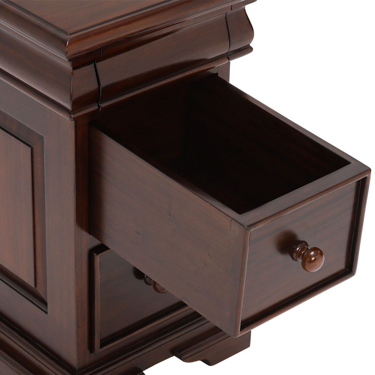 I love this bedside table for its timeless mahogany finish and classic design, which adds warmth and character to both traditional and transitional interiors. It works particularly well in bedrooms that favour antique or vintage-inspired furniture, but can also add a touch of sophistication to modern schemes with clean lines and minimal accessories. When styling, consider keeping the top surface clear with a simple lamp or a cosy candle, while the drawers are perfect for stashing essentials like books or skincare. To enhance its elegance, pair it with complementary wooden finishes in bed frames or mirror frames, and avoid overcrowding the surface to maintain a sleek, polished look.